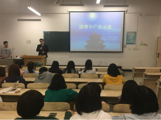 三位同学为我们生动地讲解了去除小广告的方法,也细致地为我们进行了校园的人身与财产安全教育。