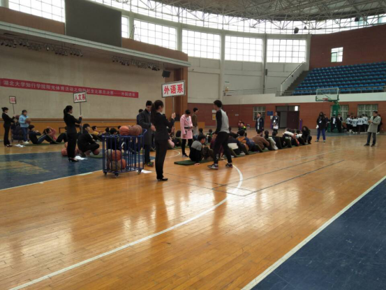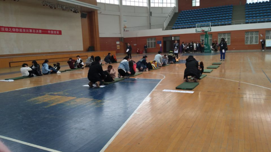 (通讯员:胡静娴)12月7日下午2点,由外国语系主办的仰卧起坐比赛总决赛在体育馆准时开始。各系学生纷纷前来观看比赛,受邀前来的有外国语系刘克书记、傅丽书记、冯健老师,辅导员程星老师、李婧妮老师、思政与体育课部杨旭主任、经管系甘露老师、粮工系冯书祥副书记、机电系王松老师、会计系廖宗涛老师、人文系胡国毅老师等嘉宾。