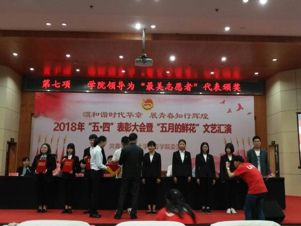 4月27日下午2:30,我校2018年“五·四”表彰大会暨第十二届“五月的鲜花”文艺汇演在知远楼201报告厅隆重举行。学院、系部领导及职能部门负责人莅临现场。