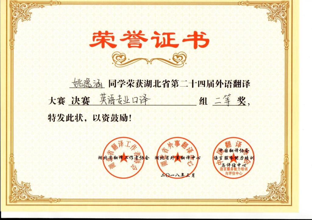 yl7703永利集团湖北省第二十四届外语翻译大赛决赛获奖名单
