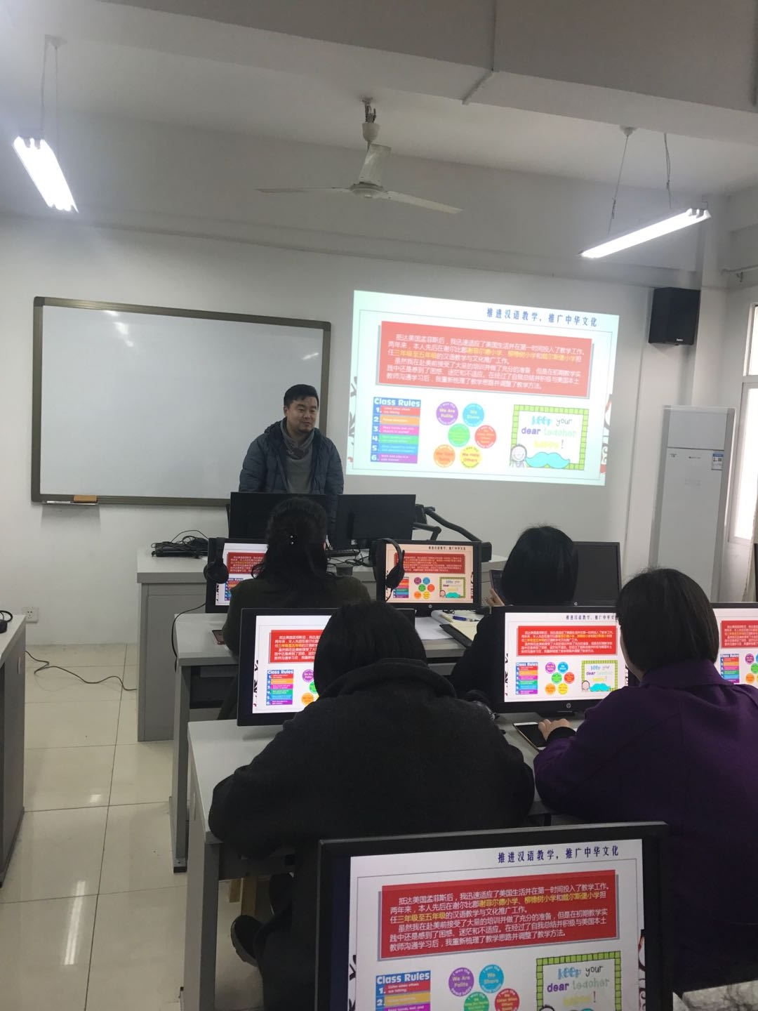 贺欢老师首先介绍了自己2014年9月开始的两年美国孔子学院中文课程任教经历。贺老师在美国孔子学院主要教授小学课程,班上有来自英国、意大利、墨西哥、越南以及菲律宾裔的学生,文化背景较为复杂,由于是小班教学,他会针对不同学生制定不同学习计划和教学方案。为了更好推介中华文化,他会经常开展中国文化活动,例如:穿汉服表演戏剧,元宵节集体做汤圆,他还给学生讲中国麻将和扑克,以此来带动课堂氛围。