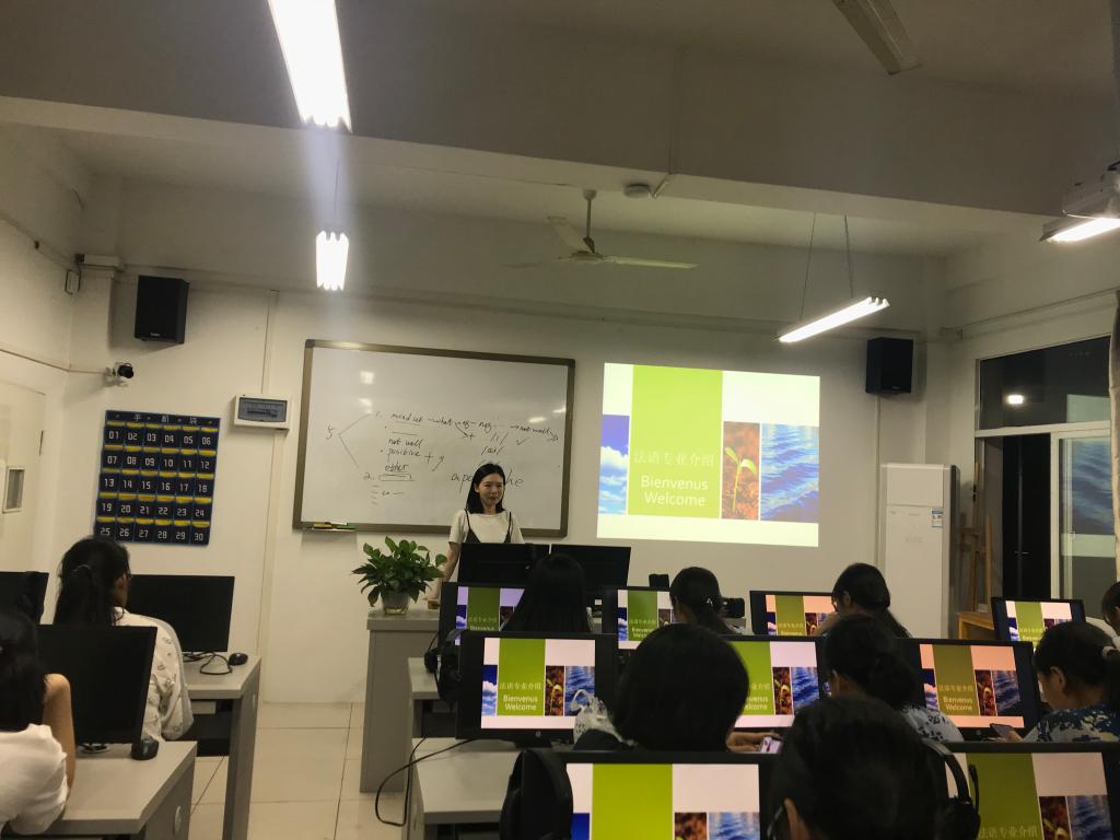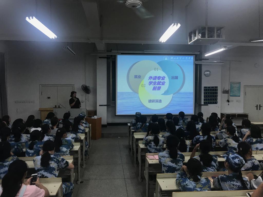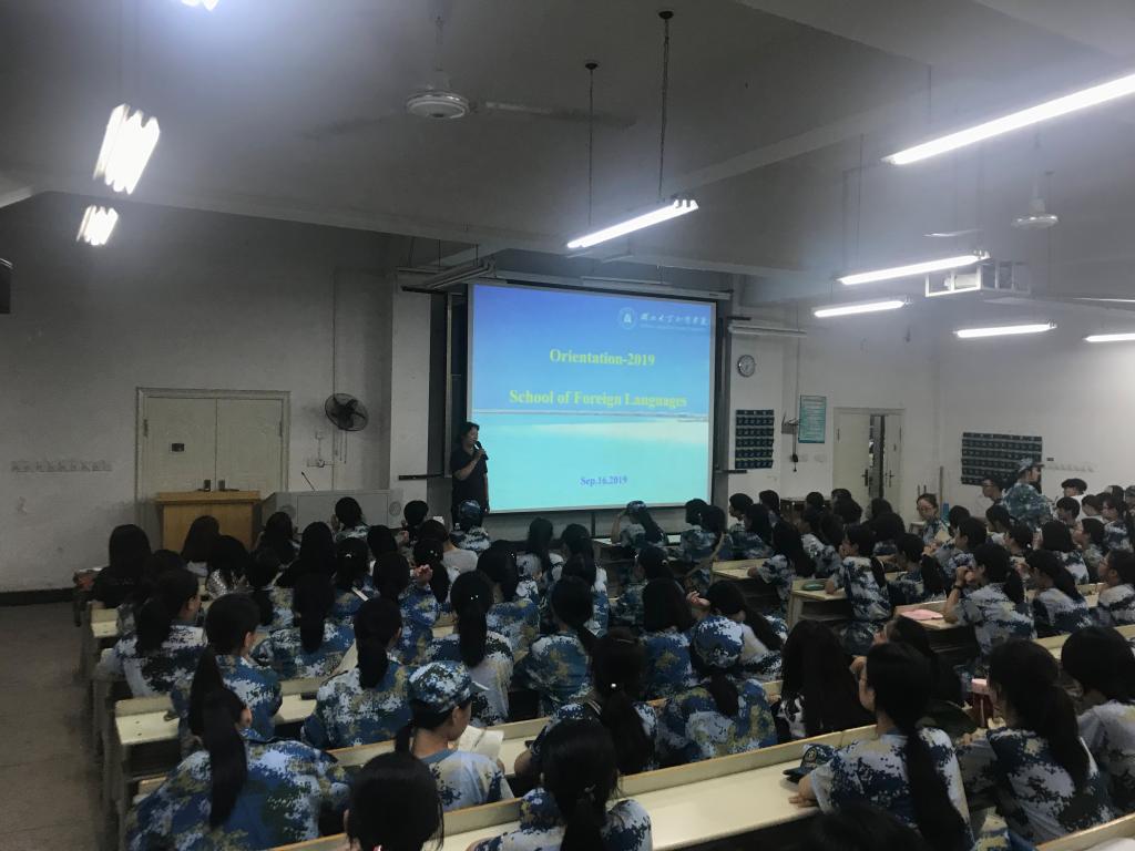 为使2019级新生尽快适应大学生活,了解本专业概况,强化专业认知,明确专业学习目标,顺利开展专业学习,yl7703永利集团于9月16日晚在知新楼208成功举行2019级新生专业介绍会。yl7703永利集团院长冯健教授、英语专业教研室主任李敏慧老师、商务英语专业教研室主任董筠老师、法语专业教研室主任孙偲老师、中外合作教研室主任林名仲老师出席专业介绍会。