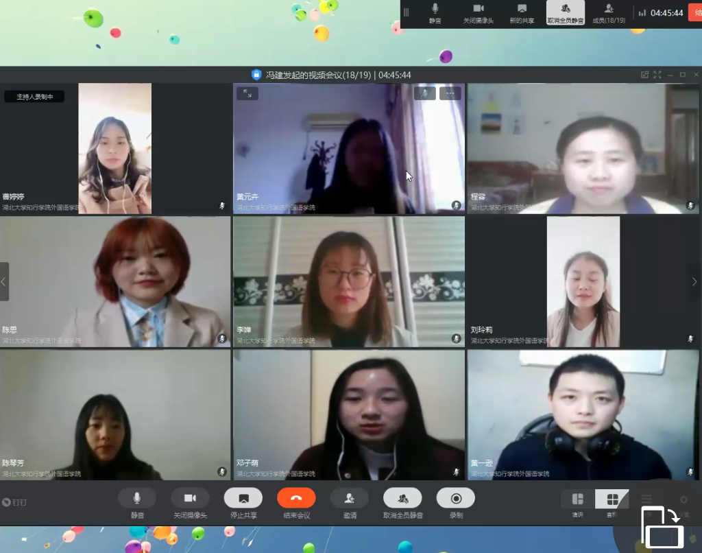 “老师和学生们准备充分,能够认真对待论文答辩,对老师提出的问题给出较为完整的回答,总之云答辩很顺利。同学在阐释自己的观点时节奏都控制的很好,整体表达都很流畅。”