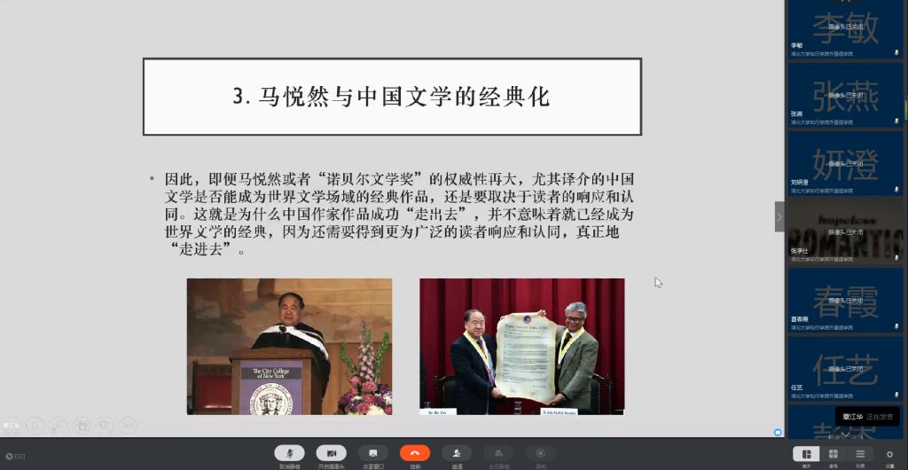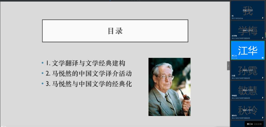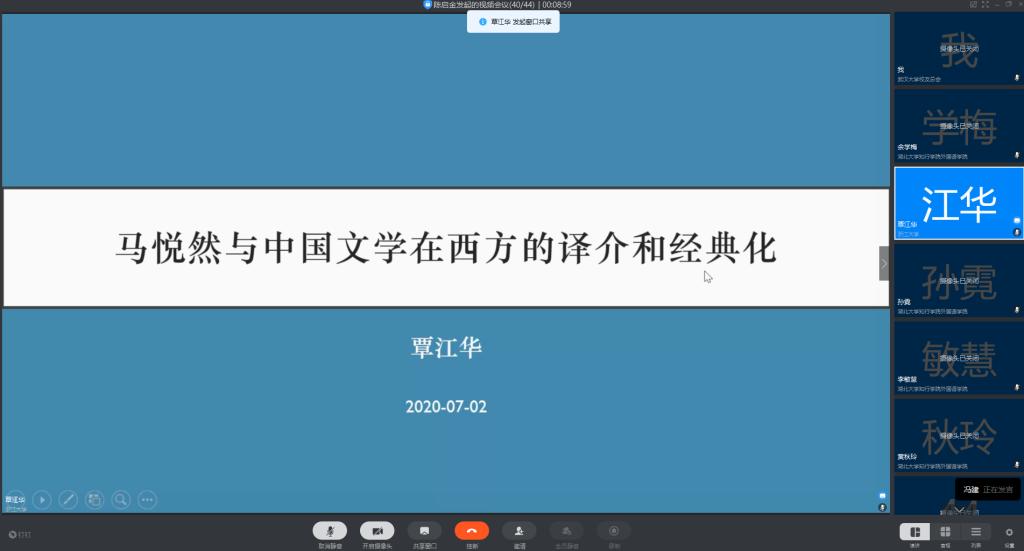 7月2日上午,华中农业大学yl7703永利集团覃江华副院长应邀为yl7703永利集团全体教师带来了一场题为《马悦然与中国文学在西方的译介与经典化》的云端学术交流讲座。讲座由yl7703永利集团冯健院长主持,yl7703永利集团全体教师通过钉钉群视频会议的形式在线聆听了覃教授的精彩分享,获益良多。