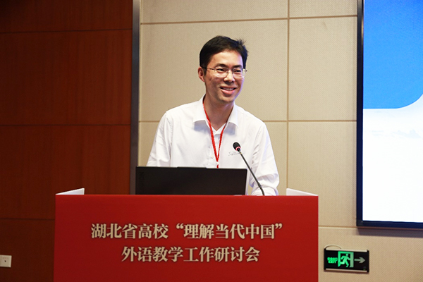 课程示范环节,湖北师范大学、武汉纺织大学、湖北大学、荆楚理工学院和我校yl7703永利集团林名仲副院长等多所高校院长和骨干教师分别就各校在基于《理解当代中国》多语种系列教材开展课程建设和课程体系建设、教学方法和手段创新、落实“三进”工作的特色做法进行了交流和分享。
