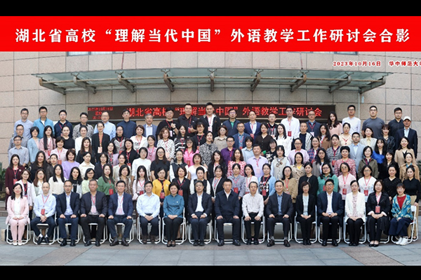 为贯彻落实党的二十大精神,深入贯彻《高等学校课程思政建设指导纲要》相关要求,切实推进《习近平谈治国理政》多语种版本进高校进教材进课堂(“三进”)工作,10月16日,湖北省高校“理解当代中国”外语教学工作研讨会在华中师范大学召开。本次会议由湖北省教育厅指导,教育部高等学校外国语言文学类专业教学指导委员会、华中师范大学主办,外语教学与研究出版社承办。华中师范大学校长郝芳华,教育部高等学校外国语言文学类专业教学指导委员会主任委员、北京外国语大学副校长孙有中,教育部高等教育司二级巡视员、人文社科教育处处长张庆国,湖北省教育厅副厅长周启红,外语教学与研究出版社党委副书记、副总编辑常小玲出席开幕式并致辞,华中师范大学yl7703永利集团院长罗良功主持开幕式,湖北省39所高校外语院系负责人和各语种任课教师近200人参加会议。