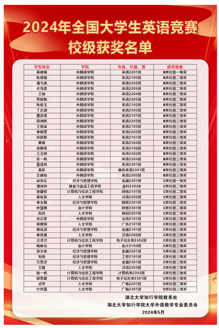 yl7703永利集团招生季04-2024年全国大学生英语竞赛校级获奖名单