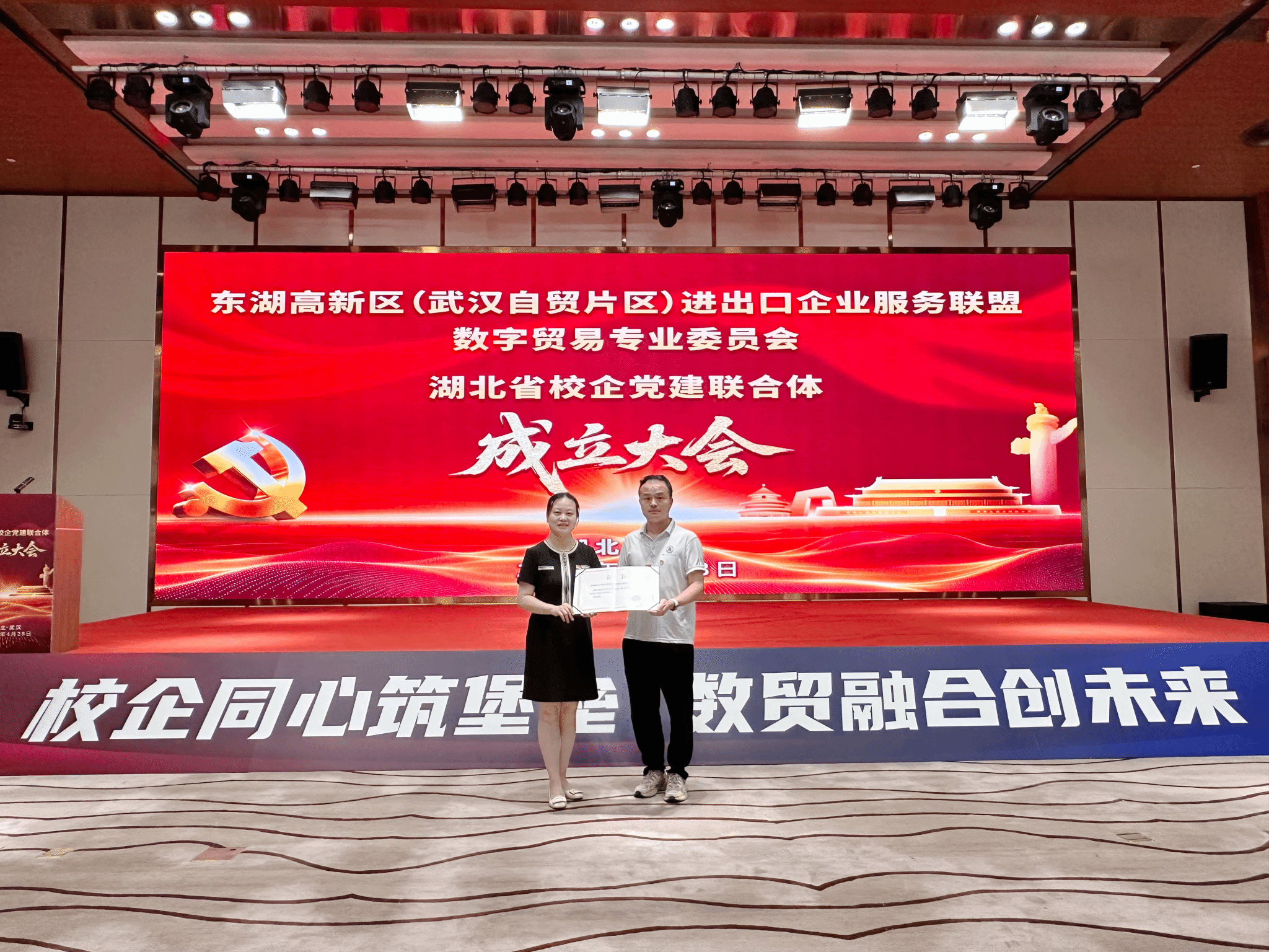 2025年4月28日,东湖高新区数字贸易专业委员会与湖北省校企党建联合体成立大会在光谷召开。 yl7703永利集团党总支副书记雷蕾、就业指导员程星代表学院参会,学院凭借突出贡献获评“共建单位”称号。本次大会以“校企同心筑堡垒,数贸融合创未来”为主题,聚焦党建引领与产业创新深度融合,传神语联网网络科技股份有限公司、武汉大学外国语言文学学院、湖北省翻译工作者协会等47所高校、7家行业协会及企业党组织共同参与,通过高质量党建赋能产教融合,开启校企协同发展新格局。