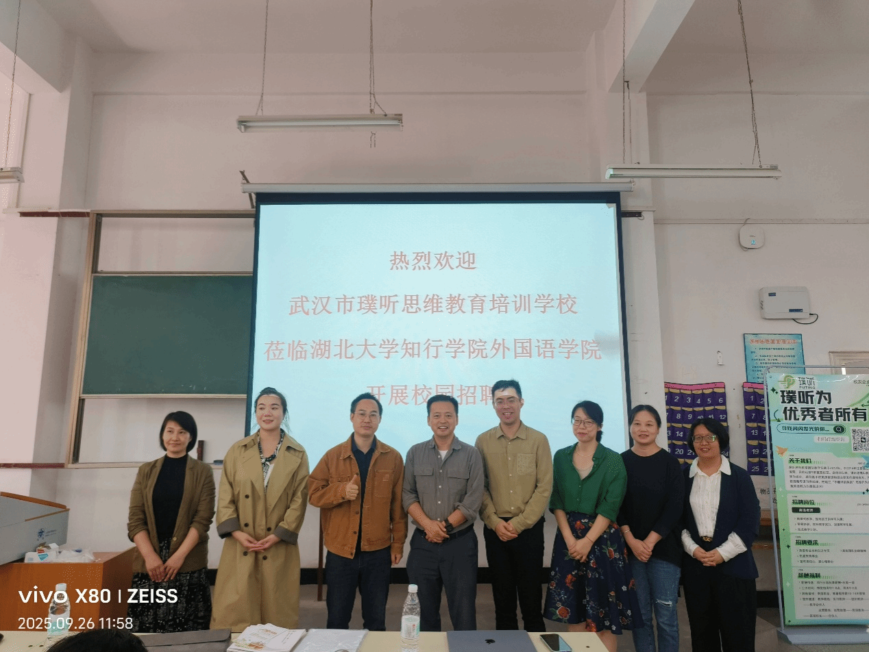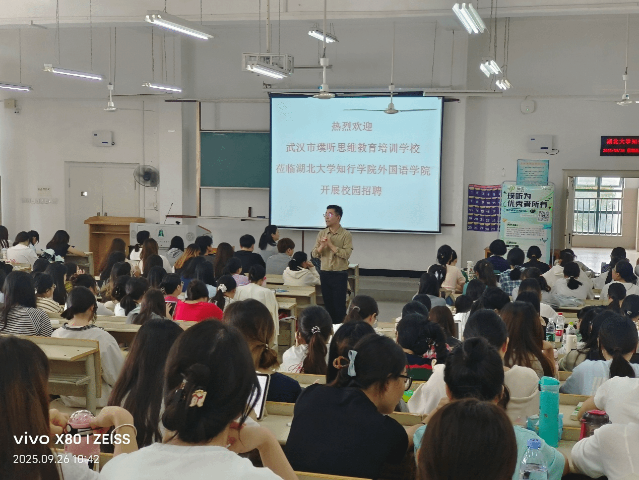 继武汉慧农无人机宣讲会后,武汉市武昌区璞听思维教育培训学校也与yl7703永利集团深度联动,开展校招宣讲专场。作为深耕思维教育领域的机构,璞听教育此次带着定制化岗位而来,招聘负责人围绕 “校企协同培养教育人才” 的主题,讲解了企业的教学理念、课程体系,以及针对外语专业毕业生的岗位要求和成长路径,让同学们清晰看到专业与岗位的契合点,也感受到校企联动带来的精准就业机会。