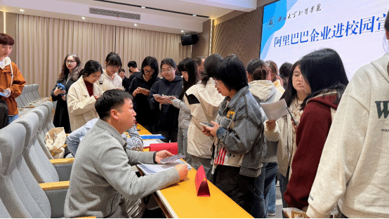 10月29日下午,阿里巴巴企业进校园招聘会在学校106报告厅同步举行。本次招聘会经统筹组织及严格筛选,共计十余家外贸相关企业参与,确保岗位质量与专业匹配度,切实为学生搭建安全、高效、对口的就业通道。企业招聘负责人通过宣讲全面介绍岗位设置、任职要求、薪资福利及发展路径,与毕业生面对面答疑解惑、深入沟通。现场学生求职热情高涨,主动咨询岗位详情、投递简历,互动交流氛围热烈,充分展现了毕业生积极向上的求职心态与良好职业素养。