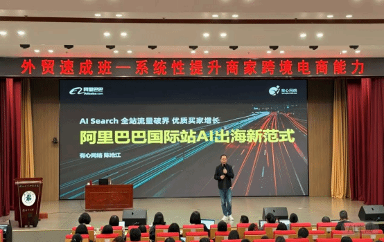 10月28日,外贸速成班讲座正式启动。阿里国际站讲师陈仓江以Accio工具实操为切入点,结合外贸业务全流程,将行业实战内容融入人才培养环节,系统讲解工具应用技巧与高效工作方法,帮助学生快速掌握外贸基础实操技能,有效弥补课堂教学与行业实践之间的断层。10月29日,讲师Nikki分享自身创业经历,从行业趋势、岗位需求、职业规划等维度展开交流,用真实案例为学生解析外贸行业发展前景与从业核心素养,内容兼具实用性与指导性。