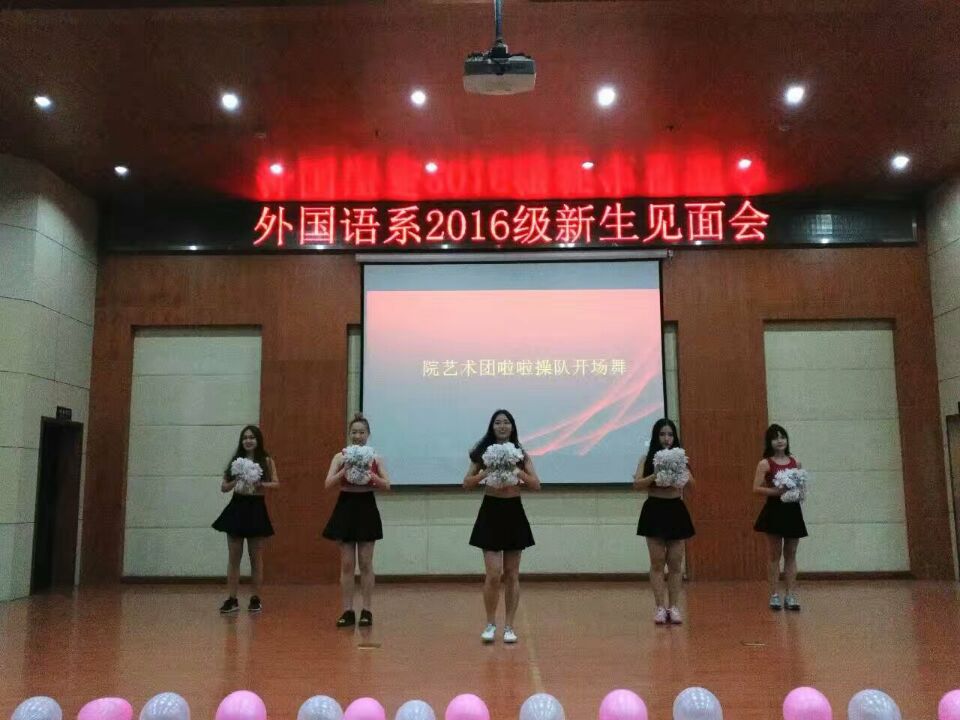 院艺术团啦啦操队的劲舞拉开晚会的序幕。外国语系分团委学生书记王倩文上台讲话,在讲话中,学生书记王倩文表达了对新生的欢迎以及希冀,愿在大学这个新的起点会有更好的学习与生活。随后,新生带来的独唱、戏剧表演、影视配音、T台秀等节目,既带有我系特色,又让人眼前一亮,更是给现场带来不少欢乐气氛。晚会中,我系15级学生带来的歌曲串烧,将全场领向高潮。最后,外语系分团委干部们的一首会歌,表达我系分团委的热情与对新生的欢迎。