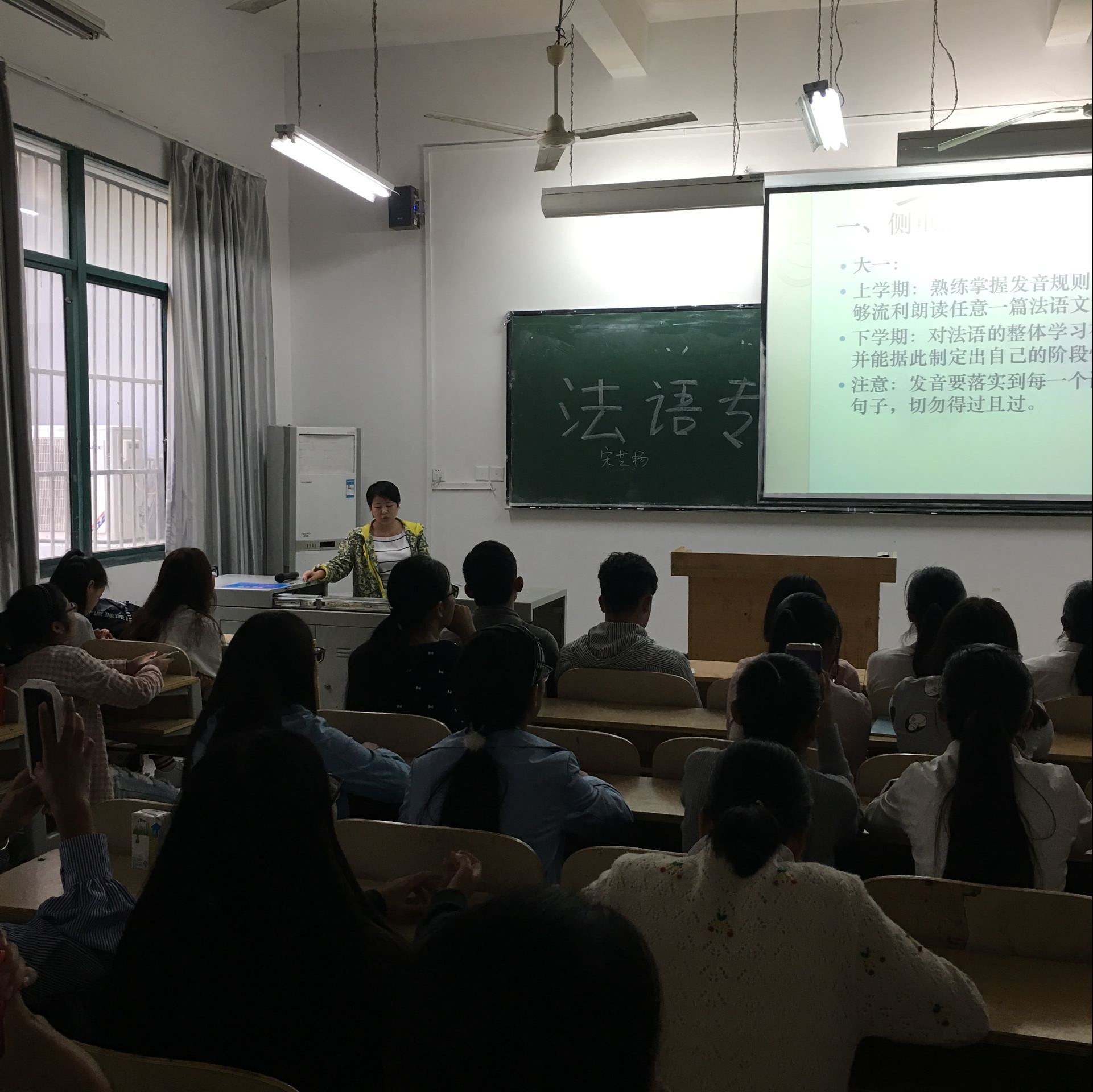 10月18日晚,在辅导员和班助组织下,2016级法语专业新生邀请法语1401班刘学、宋芝畅学姐,和新生分享了学习法语的经验。