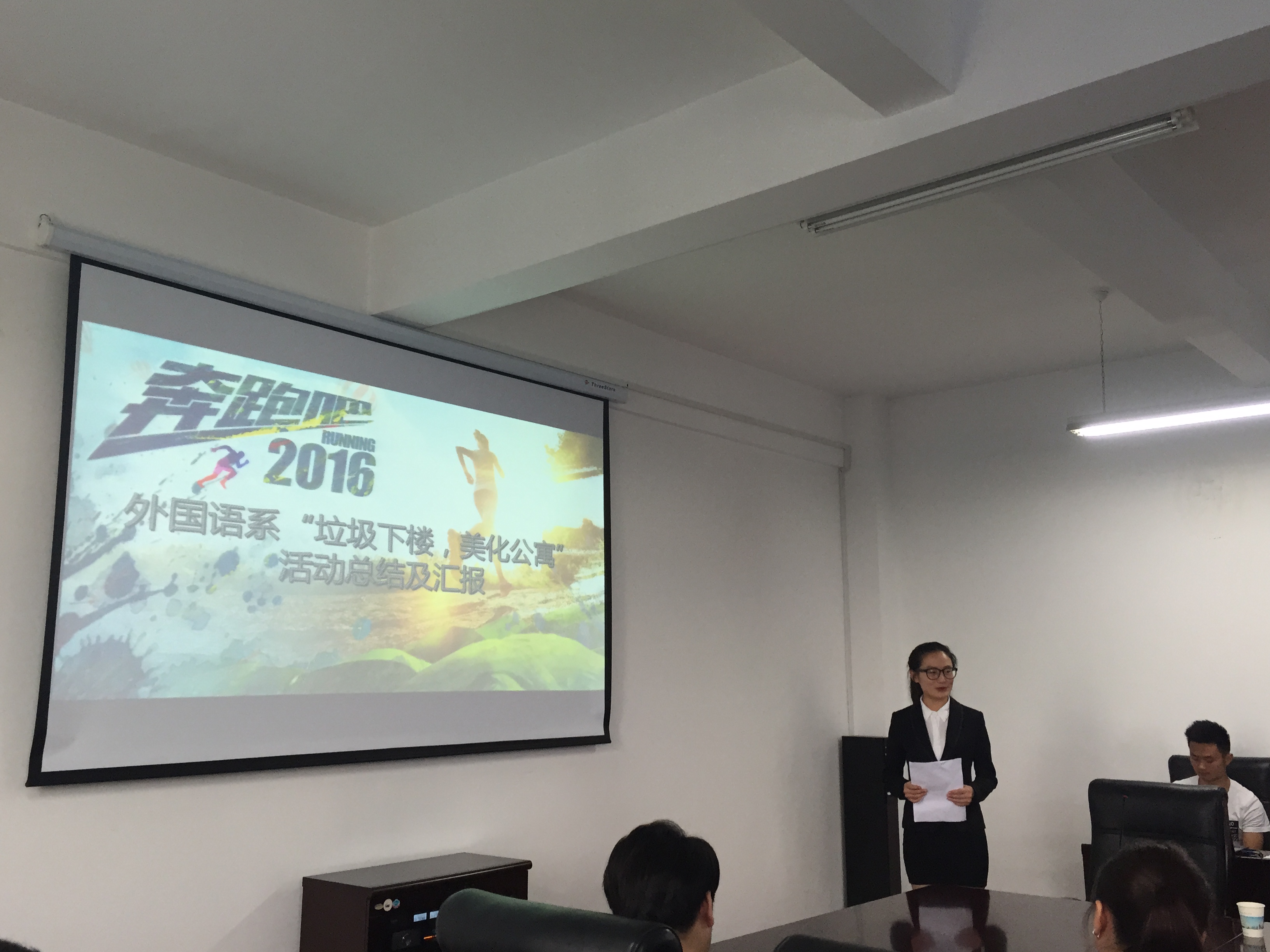 (通讯员 冯书祥)5月17日上午,学生社区在知远楼601会议室开展“垃圾下楼、美化公寓”活动验收评比。在此次评比中,我系胡藁升同学作为发言代表从宣传动员、落实方案、成果总结、工作特色四个方面进行了汇报,最终以实施效果和现场评比总分第一名的佳绩荣获“优秀卫生系部”称号。
