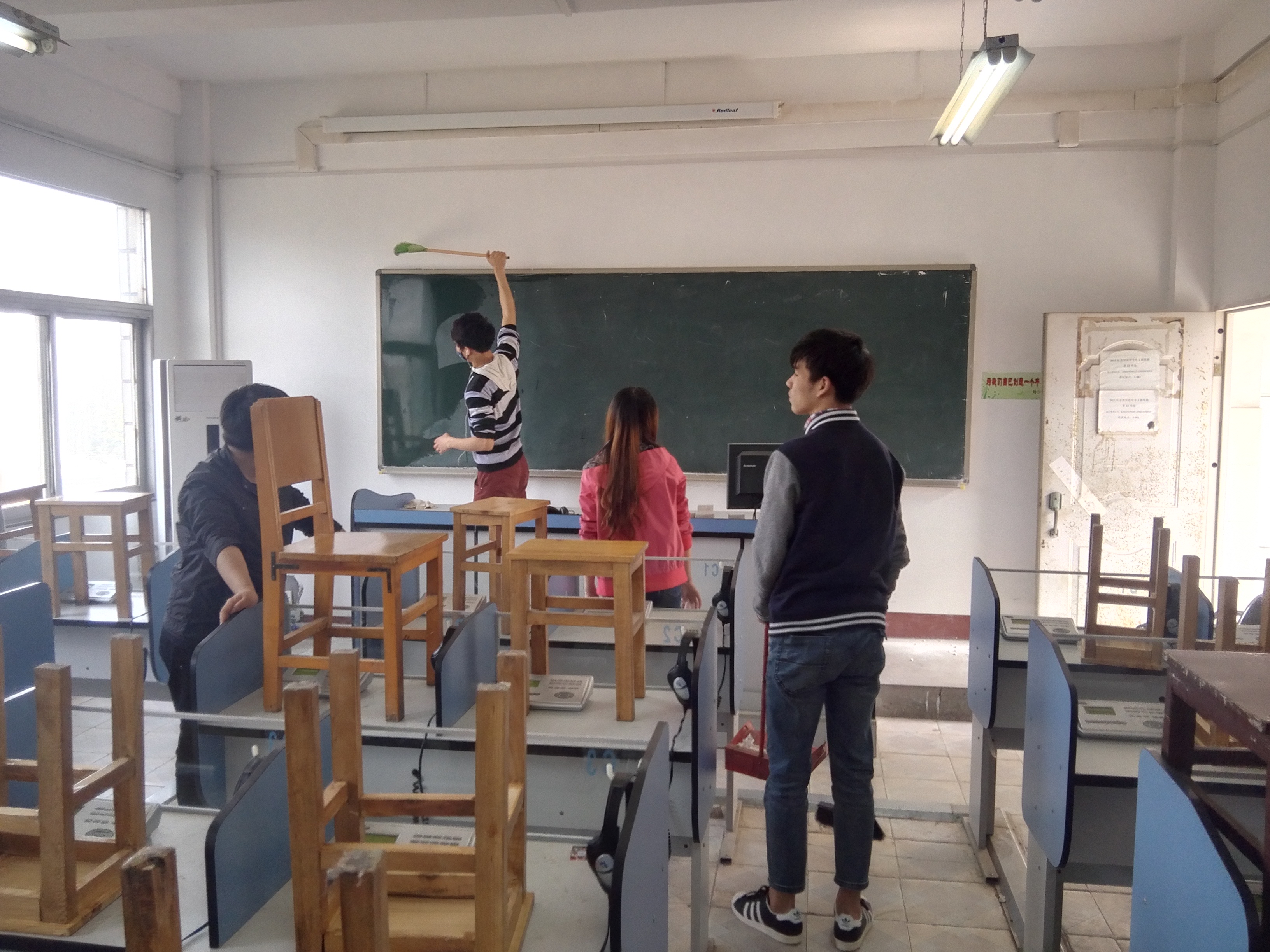 本次清扫活动贯穿整个雷锋月,每周开展一到两次。大一各个班级每班每周派出六名志愿者,利用每周三或周五中午时间,对一教指定教室进行打扫。在分团委干事们的号召下,同学们自行准备好盆、抹布、拖把等工具,将指定教室里的课桌、黑板、地板以及各个角落都认认真真地打扫了一遍。每次活动会进行约半小时,同学们虽然显得有些疲惫,但当看到教室在大家的共同努力下变得更加清洁时,每个人的脸上都绽放出满足、喜悦的笑容。