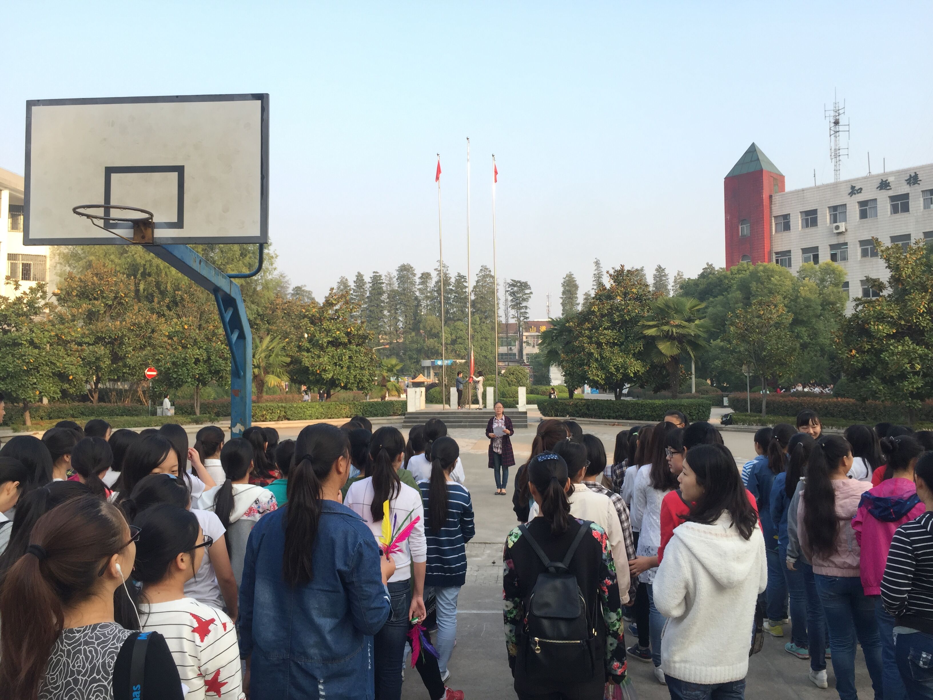 (通讯员 冯书祥)10月19日,我校外国语系庆祝反法西斯胜利七十周年升旗仪式在水泥篮球场举行。分团委学生书记雷娟发表演讲,2015级新生参加了升旗仪式。