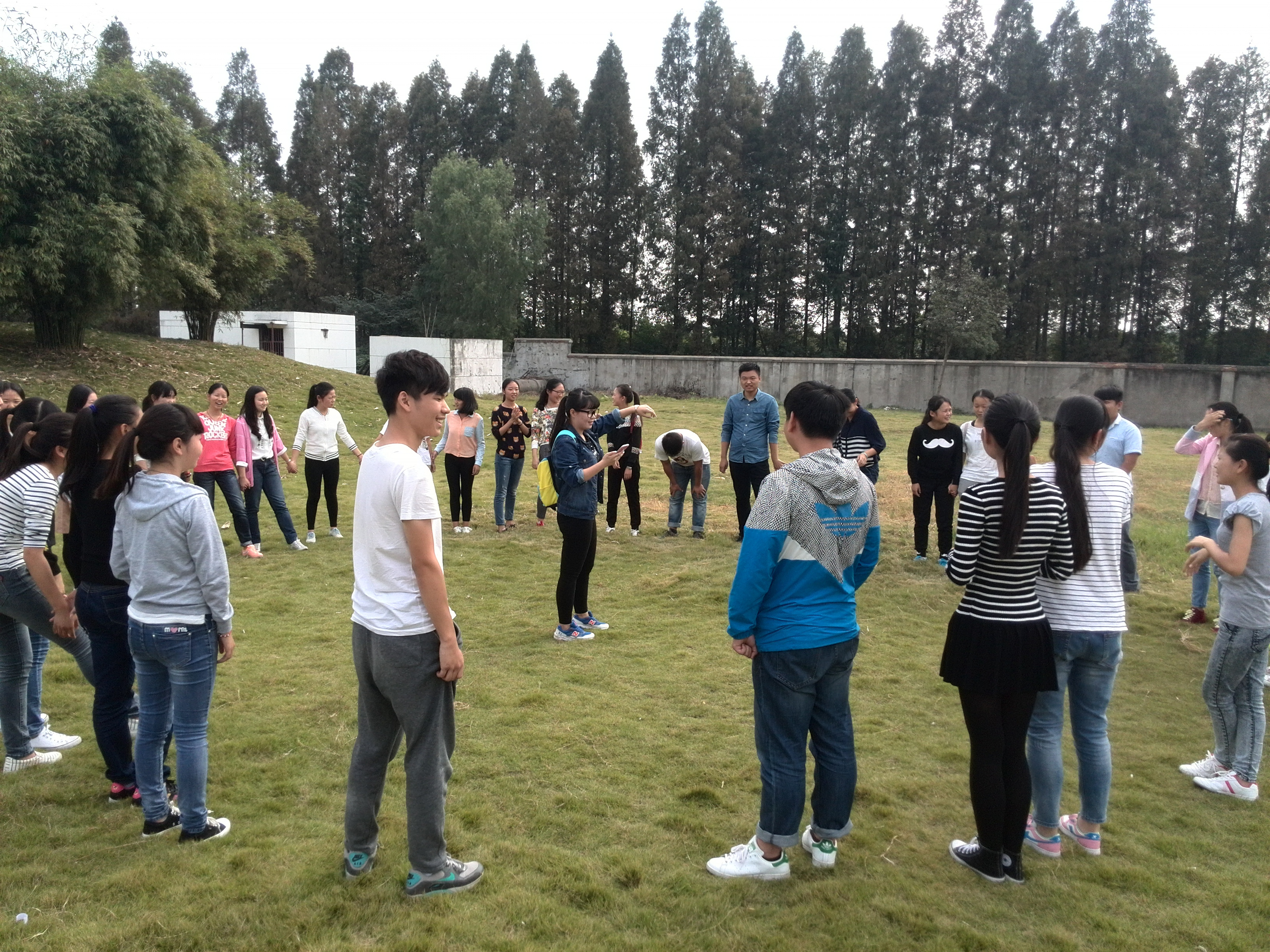 抢数字游戏主要是按照一定顺序轮流抢数字来记住对方的名字,训练大家的反应能力,增进组员之间的相识度。心有千千结游戏让所有人一开始就手拉手围成圈,面向圆心任意走动,然后有音乐响起,当音乐停止时,大家要立即拉住身边同学的手,这个活动主要是让大家增强团队合作意识,体会在人际交往中的信任。