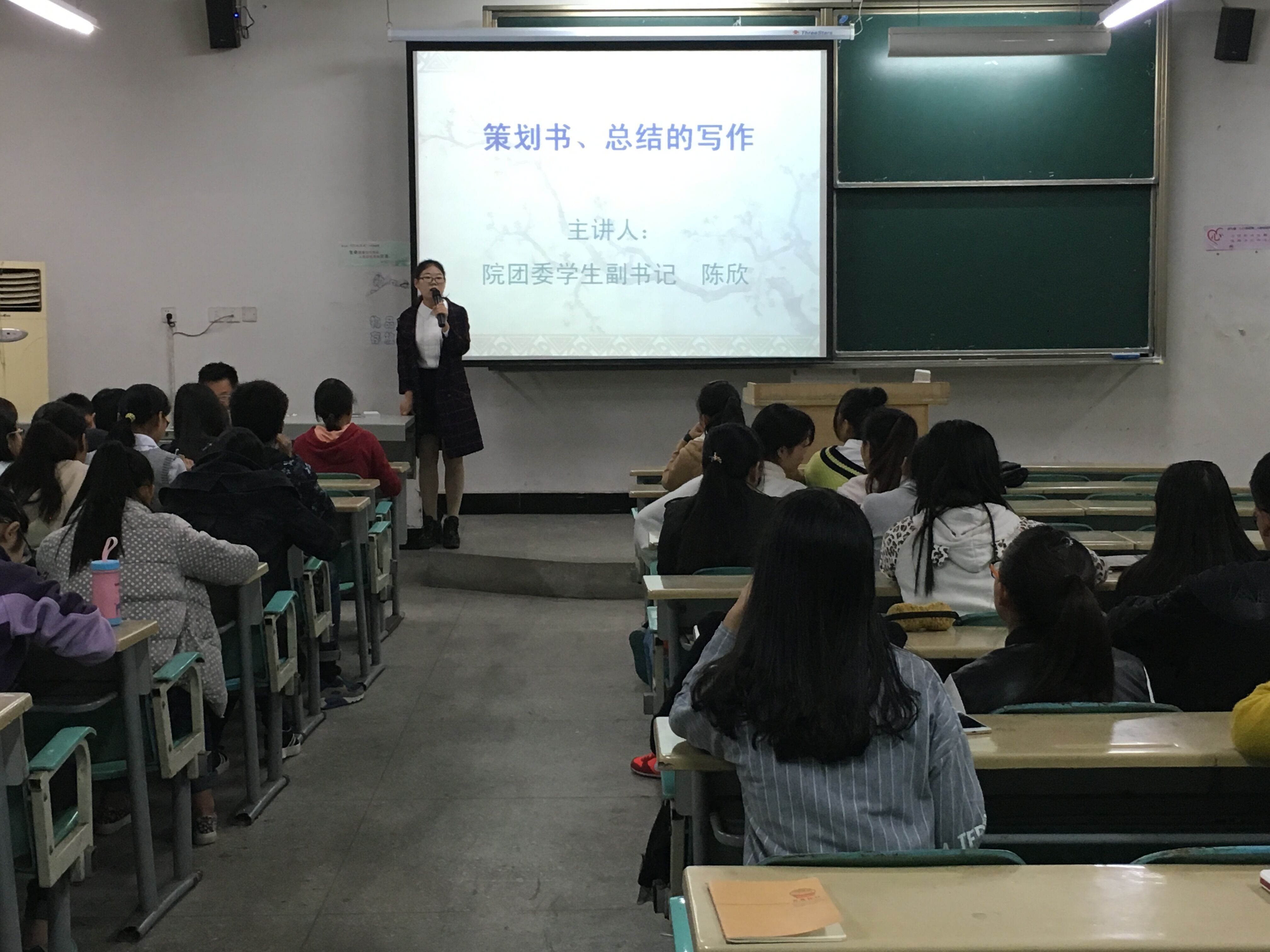 (通讯员 冯书祥)2015年10月19日 我系分团委书记雷娟对院团委干部进行了公文培训,培训内容主要是公文格式,构成要素,用途以及语言表达。通过幻灯片展示出公文通用语,一般格式及注意事项,最后用20个字总结公文写作,言简意赅,通俗易懂。