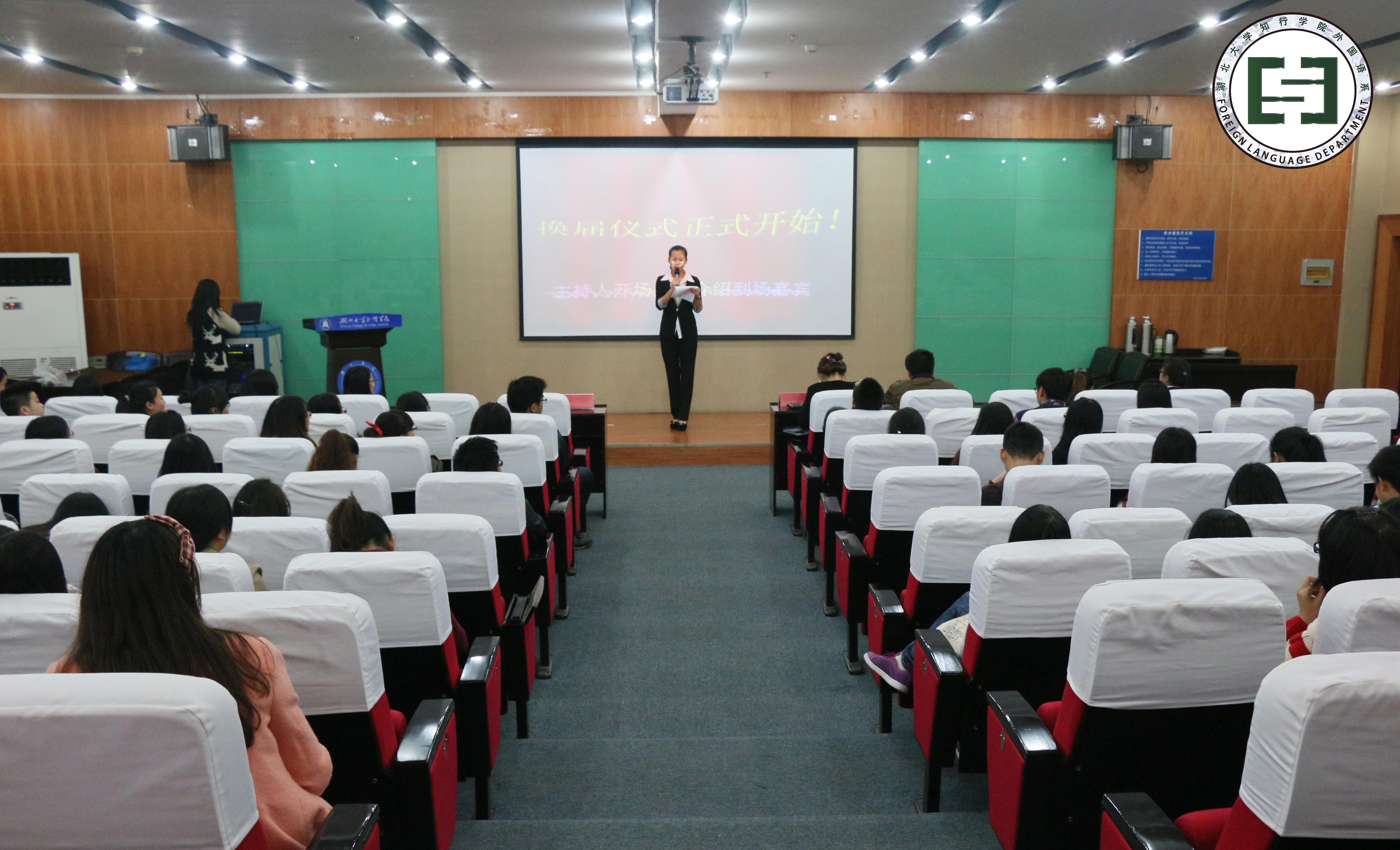 本网讯(通讯员 许文艳)11月11日晚上6点30分外国语系分团委学生会于行政楼202报告厅举办了换届仪式。莅临本次大会的嘉宾分别有外语系书记刘克、副书记傅丽、分团委学生会指导老师向蕊以及辅导员吴瑛。外国语系150多名学生参加了仪式。