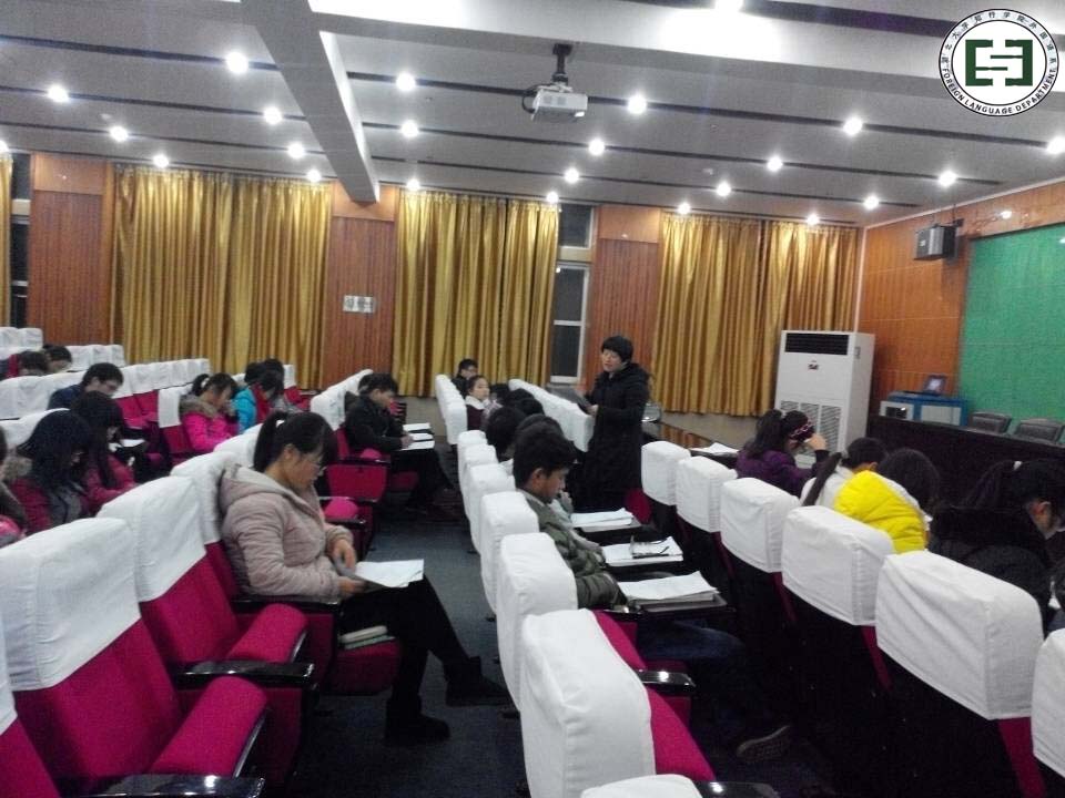 本网讯(通讯员张萌)12月16日,由外国语系分团委学生会组织,参加学院一系一品四六级义务辅导的同学们于6点半准时在四教309、310、311三个教室进行模拟考试,考试于当晚八点半正式结束。12月18日晚上六点半,外国语系王丹老师针对模拟考试的试卷进行了评讲,学生们积极发言,及时向老师针对试卷进行提问。