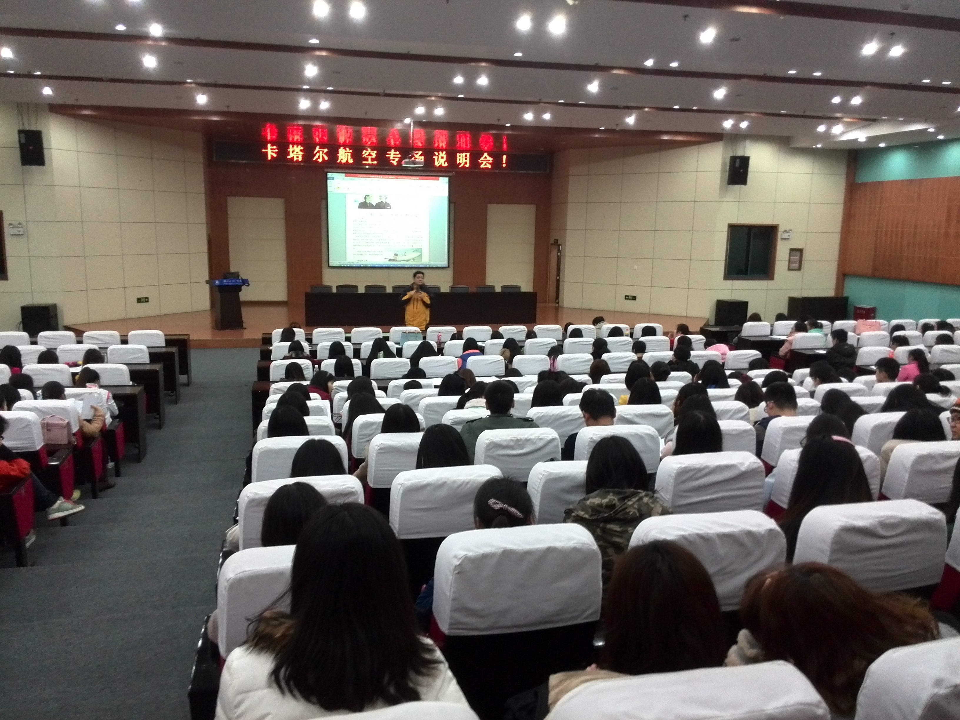 招聘会于下午两点在报告厅201正式开始,工作人员介绍了卡塔尔航空的基本情况,招聘职位及工作内容、工作环境及薪资待遇等同学们关心的信息,并详细解答了如何办理出国工作签证等问题。最后,刘克书记则祝福同学们都能顺利通过论文答辩,找到一份适合自己的工作,拥有美好的未来。