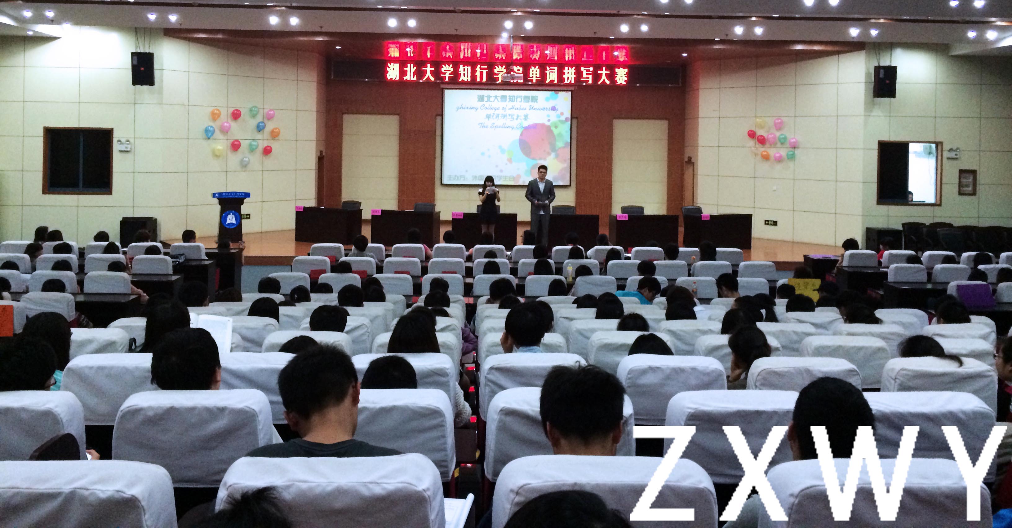 本网讯(通讯员刘春艳 熊美)5月13日晚6时许,由外国语系主办的“yl7703永利集团英语单词拼写大赛”在行政楼报告厅201隆重举行。我系副书记傅丽、分团委学生会指导老师向蕊和伍澄老师出席了本次活动。