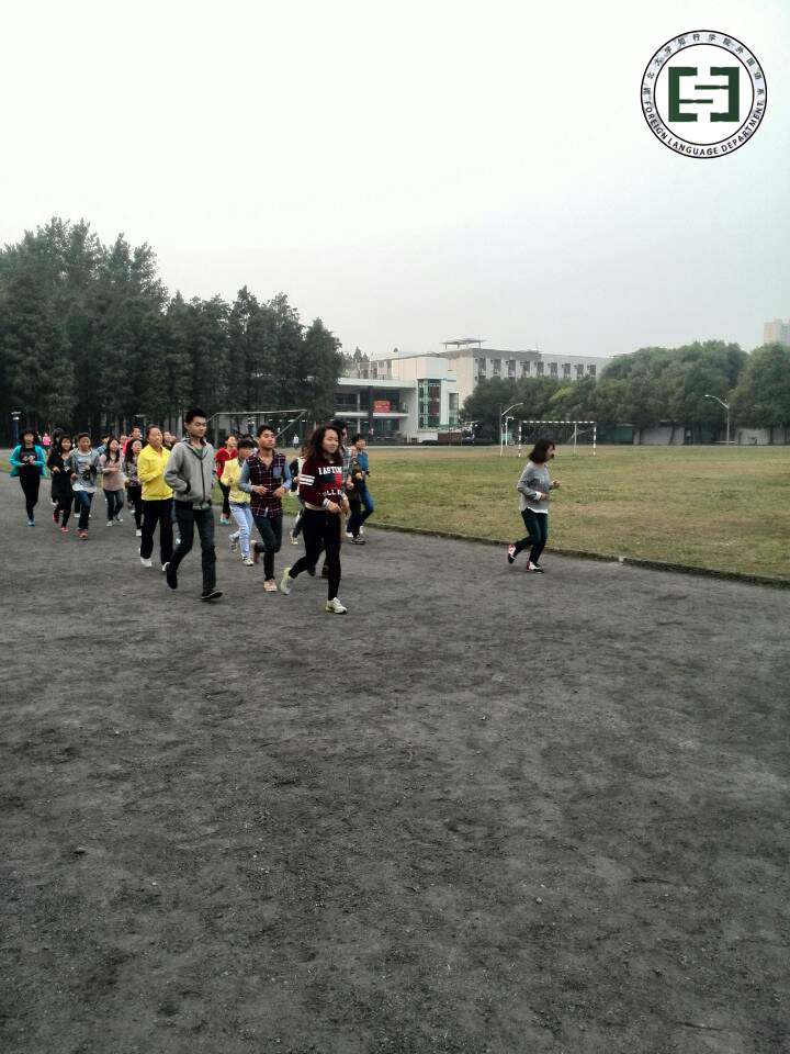本网讯(通讯员 张萌)10月12日早上7点整,伴随着“早起床、早锻炼、早读书”的号角,外国语系大一同学聚集在操场主席台下整装待发。