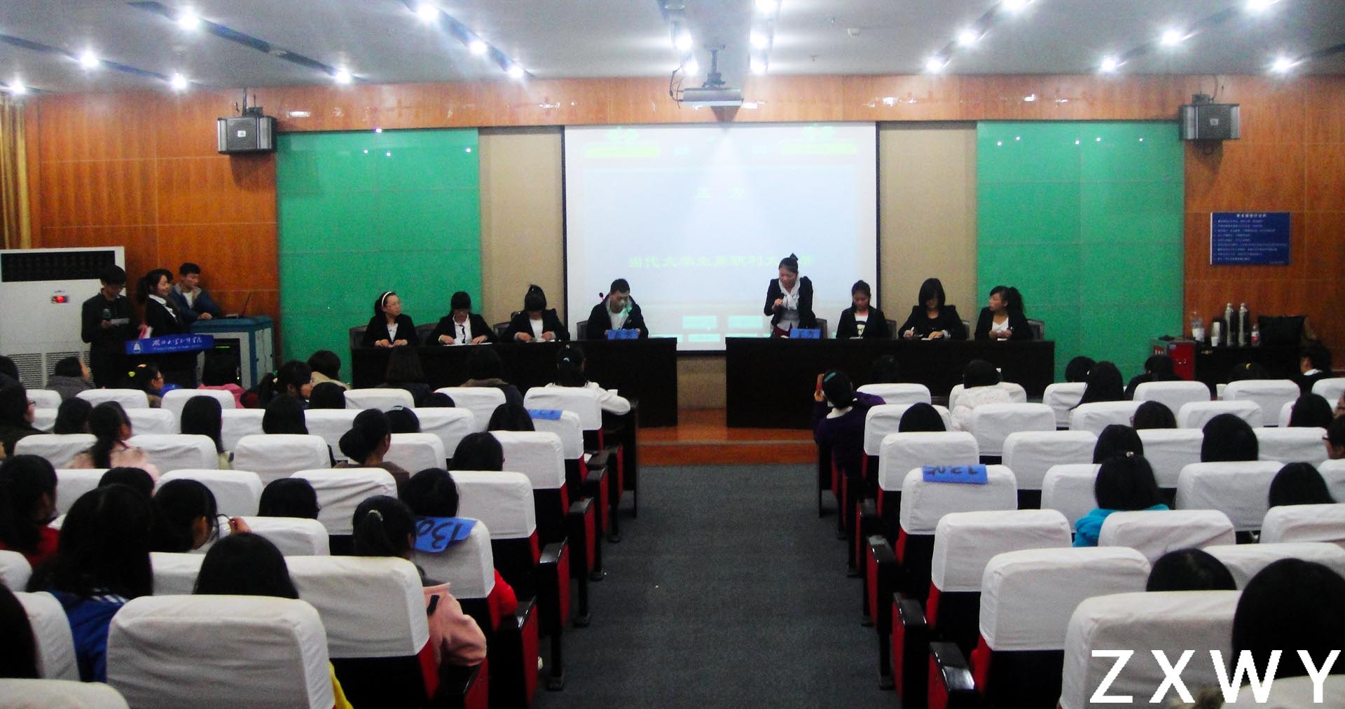 本网讯(记者罗蒙 刘春艳)为了丰富同学们的课外活动,培养大家的思辩能力,外语系于11月26日晚6时许在行政楼202举行了辩论赛决赛。出席本次活动的评委有原知行辩论社社长王艳妮,副社长曾俊,交际与口才协会代表陈翠婷、崔云,比赛由系分团委的邵孙杰和曾静主持。