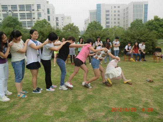 5月20日,外语系1103班在向蕊老师的主持下举办了关于团结协作的团体辅导活动,此次活动由心有灵犀(猜词语),地雷阵,团体智慧(心有千千结),无敌风火轮等游戏环节组成,通过游戏、体验和分享,让老师和同学之间、同学与同学之间加强了交流,增进了同学们的相互了解,增强了班级凝聚力,创造出真诚友善的团体氛围,使同学们能够深刻剖析自己,认识自己,体验归属感亲密感,发挥潜能,促进成长。