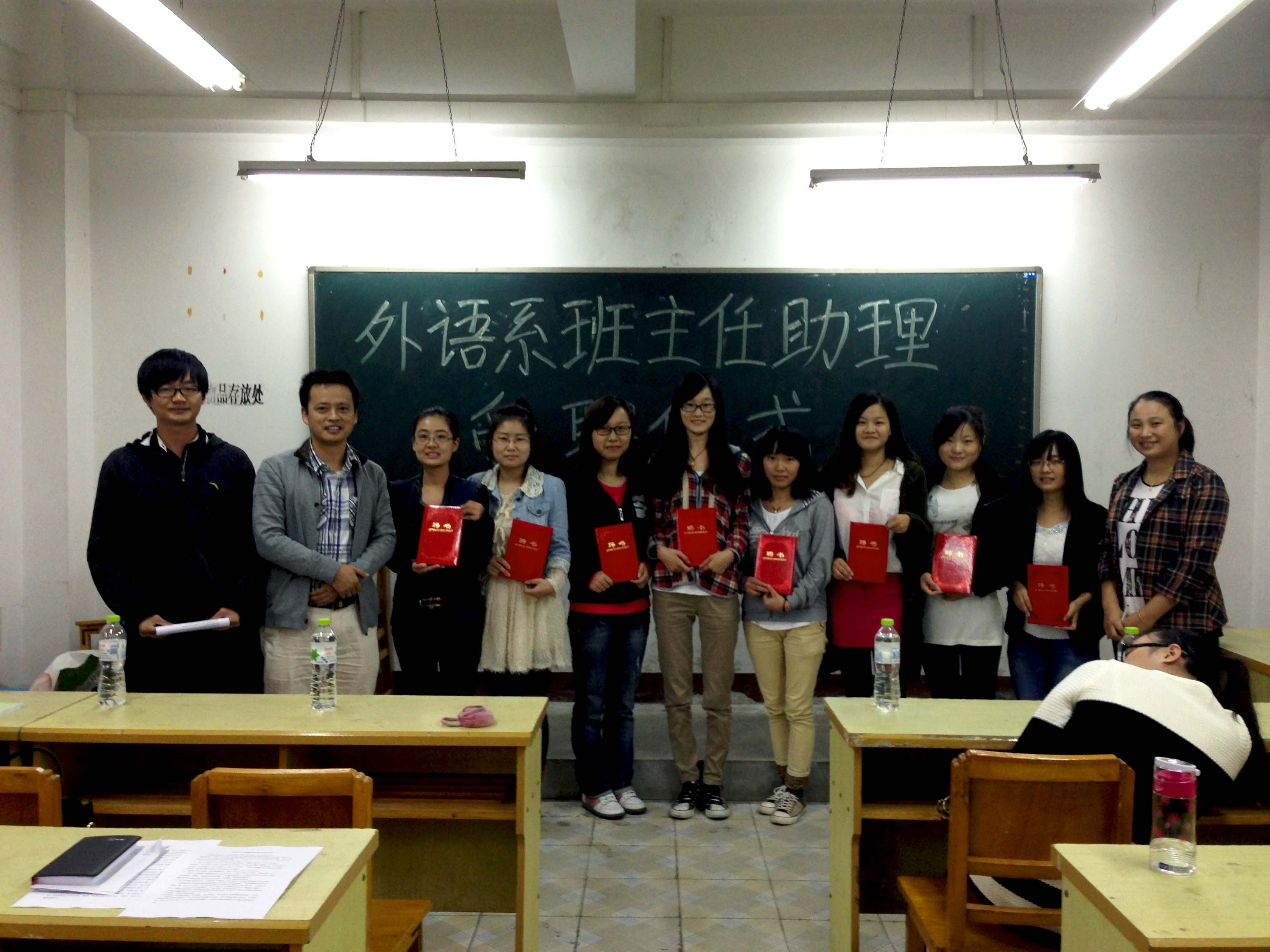 (通讯员 李慧)为保障本系各班级各项工作的顺利展开,进一步提高班级日常工作效率和大学生自制管理水平,我系于13年9月27日,在大学生活动中心206教室举行了班主任助理受聘仪式。外语系书记刘克、傅丽及各班辅导员参加了此次受聘仪式。