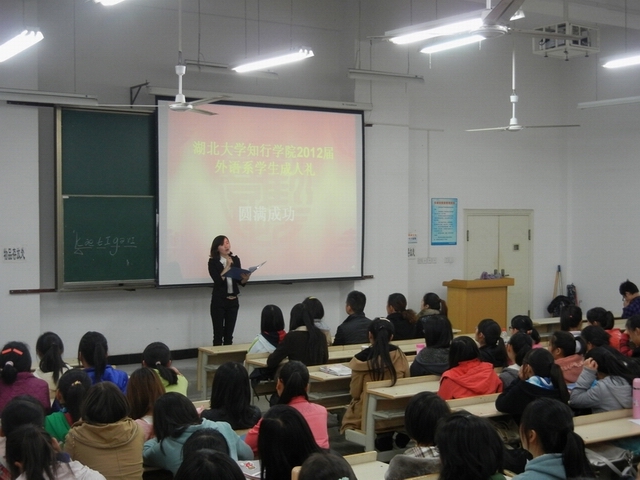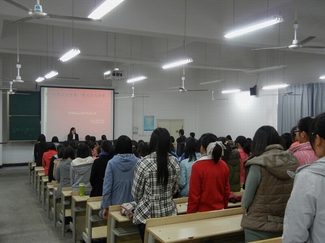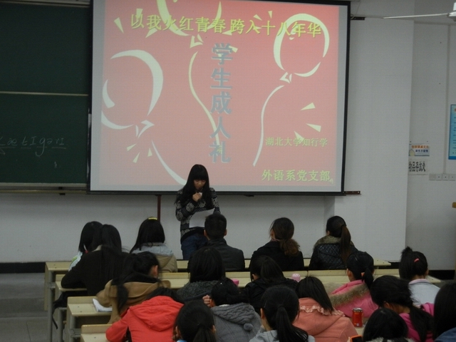 以我火红青春,跨入十八年华。11月15日下午,外国语系党支部组织2012级全体学生在4教408隆重举行以“青春、成长、感恩、责任”为主题的成人礼仪式,外国语系副书记刘克、王琳,辅导员冯书祥、李慧等出席了仪式。