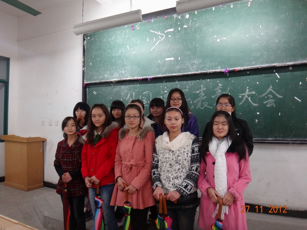2012年11月27日晚上6:30外语系学生会表彰大会在3栋214按时举行。上届外语系学生会主席山翔,副主席李秋缘、部门部长以及第八届学生会新部员出席了本次会议。