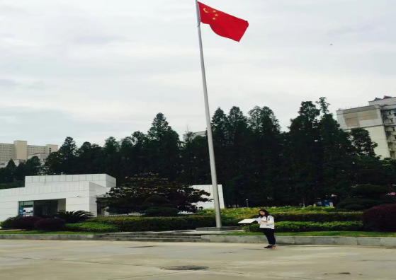 (通讯员 向蕊 田文青)2016年5月15日早上七点钟外国语系于学校正门口国旗台前举行了升旗仪式。迎着朝阳,国旗班的升旗手们护卫着鲜艳的五星红旗入场,他们着装整齐、步伐矫健。随后,伴随着《义勇军进行曲》的响起,大家集体行注目礼,庄严肃穆。冉冉升起的五星红旗激发了同学们不断向上的斗志,点燃了同学们的强烈的爱国热情。