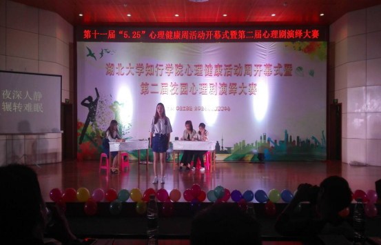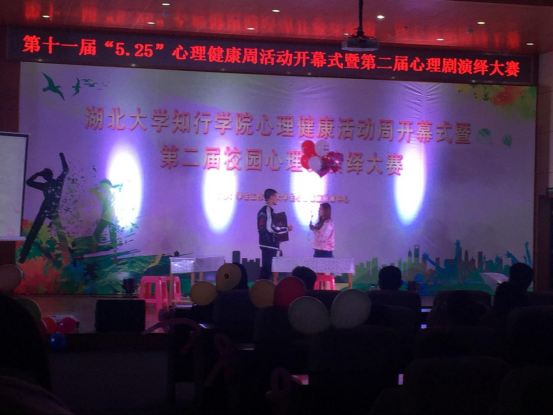 5月24日下午,我系分团委积极响应学院心理健康中心号召开展了以人际关系为主旨的心理剧表演,并参加了第十一届“5.25”心理健康周活动开幕式,同学们完美演绎了大学女生寝室之间的矛盾和冲突,最后在心理老师的帮助下,大家走出了各自生活的阴影,找到了迷宫的心门出口,不断认识自我,学会了正确定位,珍惜大学生活。同学们精湛的演技博得了现场的阵阵掌声和喝彩。