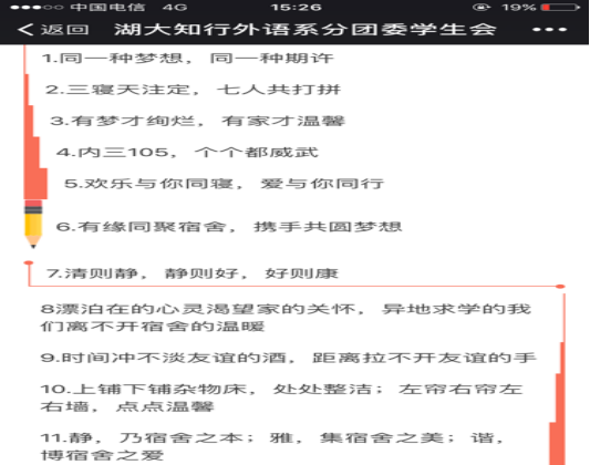 为响应学院5.25心理健康月活动号召,营造一个更加和谐的寝室氛围,使同学们关注心理健康,参与到寝室建设中来,外国语系特向全系同学征集优秀“心灵舍语”。