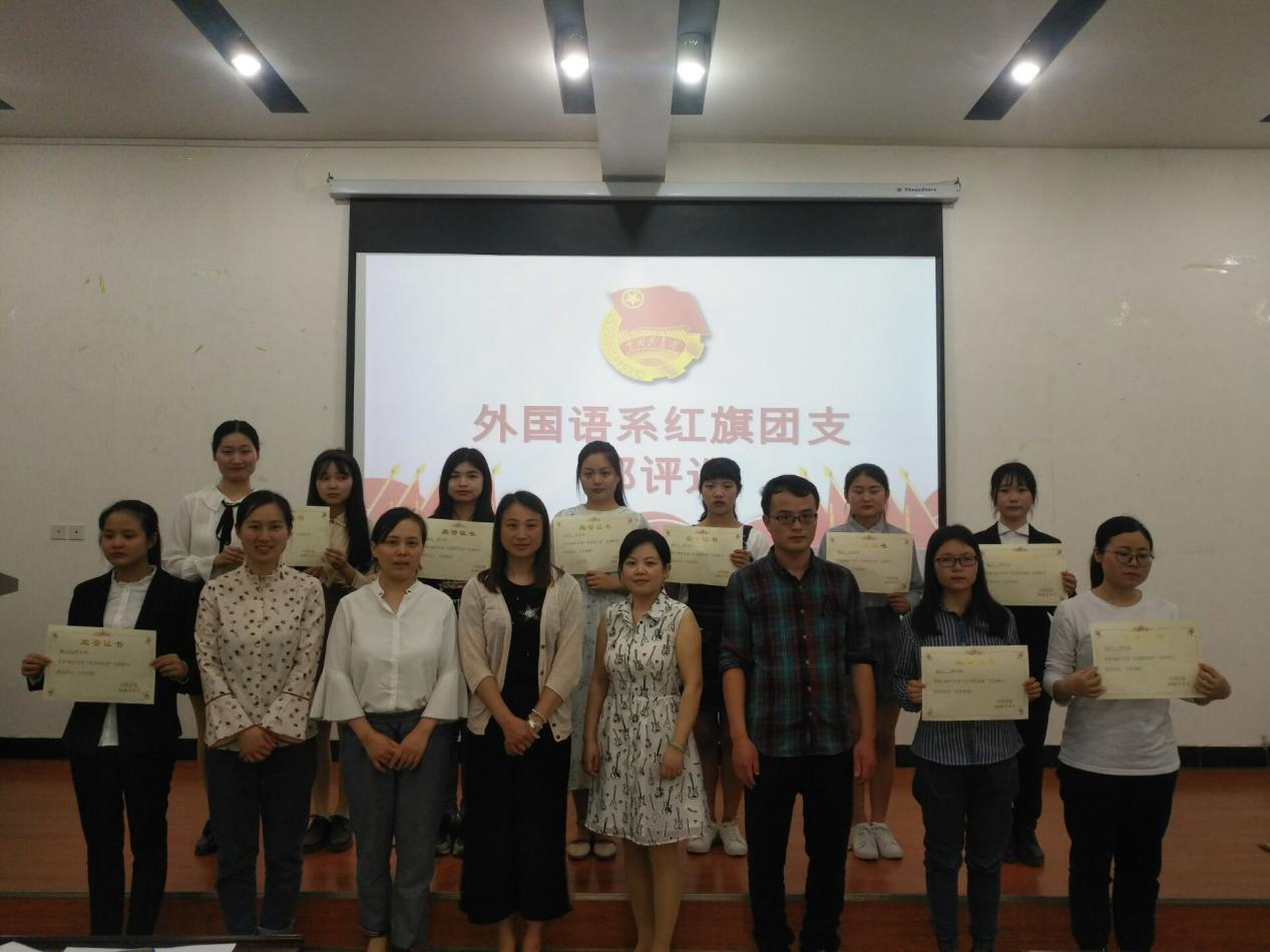 为了鼓舞和激励广大团员青年发奋成才,不断推动共青团事业蓬勃发展,我系开展了2017年度“红旗团支部”的评选表彰活动,经过纸质申报材料评选出前9个团支部参加复赛,通过视频风采展示、演讲答辩环节,体现了各团支部学风建设、寝室文明建设、团支部主题团日活动开展情况及效果、志愿活动开展情况及效果和团支部获奖情况。最终,英教1601、英旅1604、英翻1605获得红旗团支部称号, 法语1702,英教1603,英教1702,英翻1606,英教1701,英翻1705获得优秀团支部称号。(供稿人:向蕊、孙田慧)
