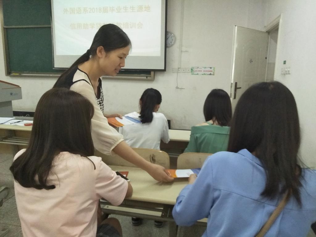 为便于大家了解生源地信用助学贷款还款流程并呼吁大家诚信还贷,我系于6月14日中午12:30在四教102举办了“外国语系2018届毕业生生源地信用助学贷款还款培训会”,外国语系2018届生源地信用助学贷款毕业学生参加,我系负责资助工作的陈雯老师主持本次培训会。