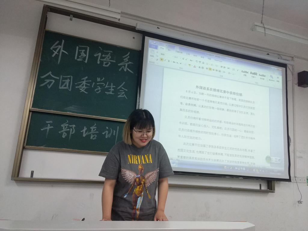 为了加强分团委学生会干部队伍的建设,加强学生干部办公软件使用技能,提高学生干部工作效率,外国语系于6月20日为学生干部进行了系统的技能培训,本次培训由13届分团委学生书记马妍和学生会主席黄秋满主讲,第14届分团委学生会全体干部参加。