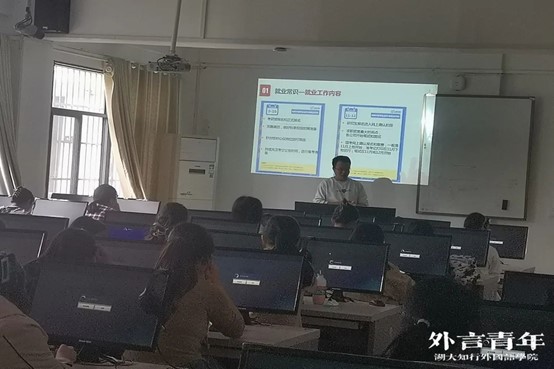 为推进2024届学生实习就业工作的顺利展开,提高学生的就业实践能力,引导学生做好就业前的各项准备工作,10月30日程星老师组织所带毕业班级召开2024届毕业生实习就业动员大会。会上,程老师鼓励学生抢抓机遇,引导学生正确认识就业形式,深刻理解实习的意义。程老师从全国高校毕业生人数、学院近三年选择考研、考公、考研报名人数及考研考公上岸比例等数据分析当前外语专业毕业生就业形势,结合计英语、法语专业定位分析学生的就业去向。本次实习就业动员大会,使学生进一步明确了实习任务、要求,引导学生端正态度,树立正确的择业观、就业观,并朝着自身目标拼搏奋斗,为顺利开展2024届毕业生实习、就业工作奠定坚实基础。(供稿人:程星)
