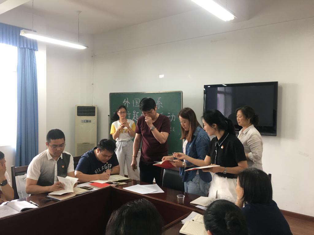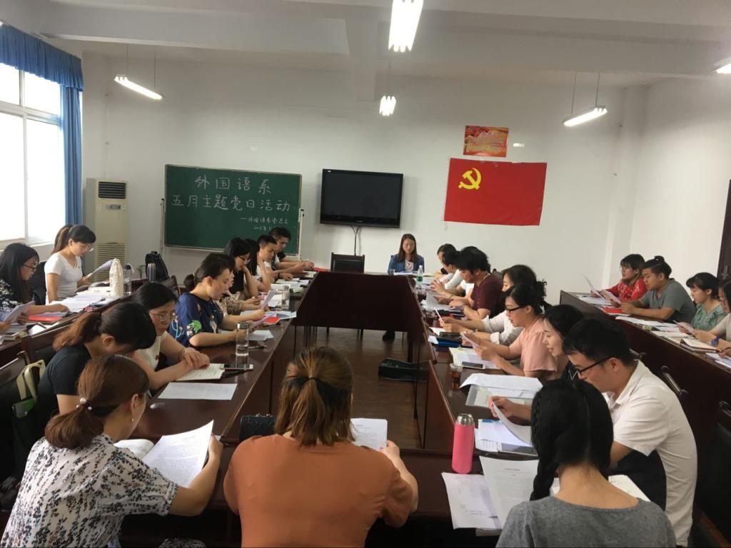5月16日下午,外国语系在行政楼401举办了5月党组织生活会,此次会议由外国语系党总支书记陈启金主持,院党委委员院长助理陈惠、教工支部全体党员、以及学生支部党员参会。