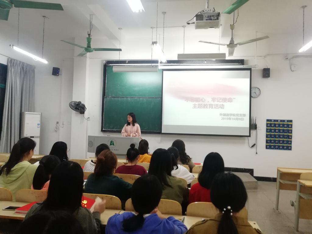 2019年10月9日晚,yl7703永利集团全体党员在三教206开展了“不忘初心,牢记使命”三会一课活动。