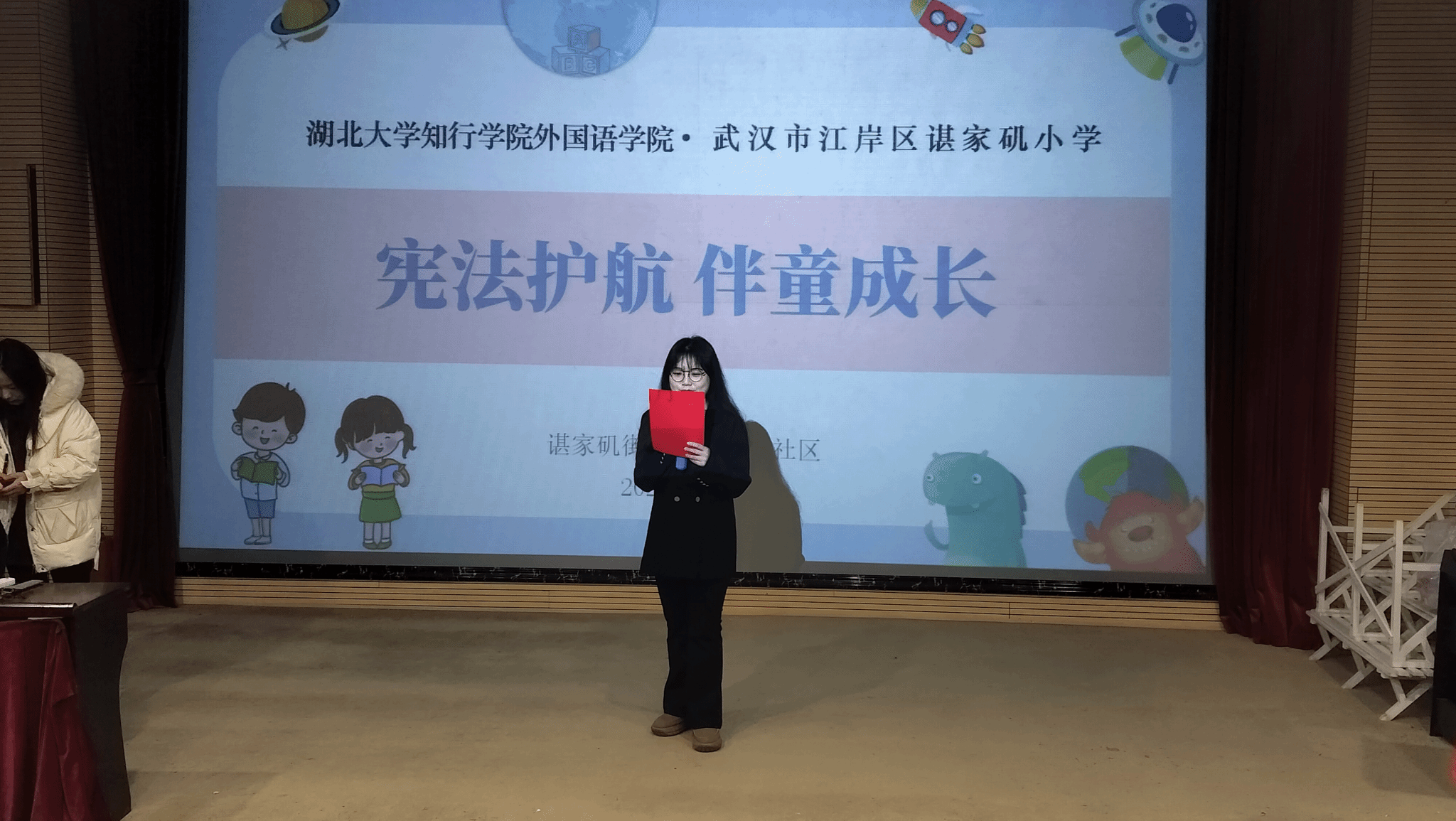 为深入弘扬宪法精神,增强学生和家长的宪法意识,12 月 19 日下午 ,yl7703永利集团联合谌家矶小学,积极发挥引领效能,组织谌家矶小学五年级二班全体学生及四位家长代表走进天兴花园社区,开展“宪法护苗,共筑未来”宪法宣讲活动。活动开场,谌家矶小学五(2)班方雨宸、詹钰琪同学的快板《宪法歌》节奏明快,丁诗允同学深情朗诵《宪法住在我心中》,瞬间点燃了现场的热烈气氛。随后,主持人通过提问的方式,激发同学们对宪法的思考与探索兴趣,活动还特别邀请人文学院法学专业大二学生,正谦法学会社长陈静同学进行宣讲,详细讲解了宪法中未成年人的受教育权、人身安全权、平等权等保护条款,并以实际案例深入剖析宪法在未成年人遭遇网络诈骗、校园欺凌等事件中的保障作用。本次活动取得圆满成功,有力推动了宪法精神在校园与家庭中的传播,为营造关爱未成年人成长的法治氛围迈出坚实一步。(供稿人:黄小雨)