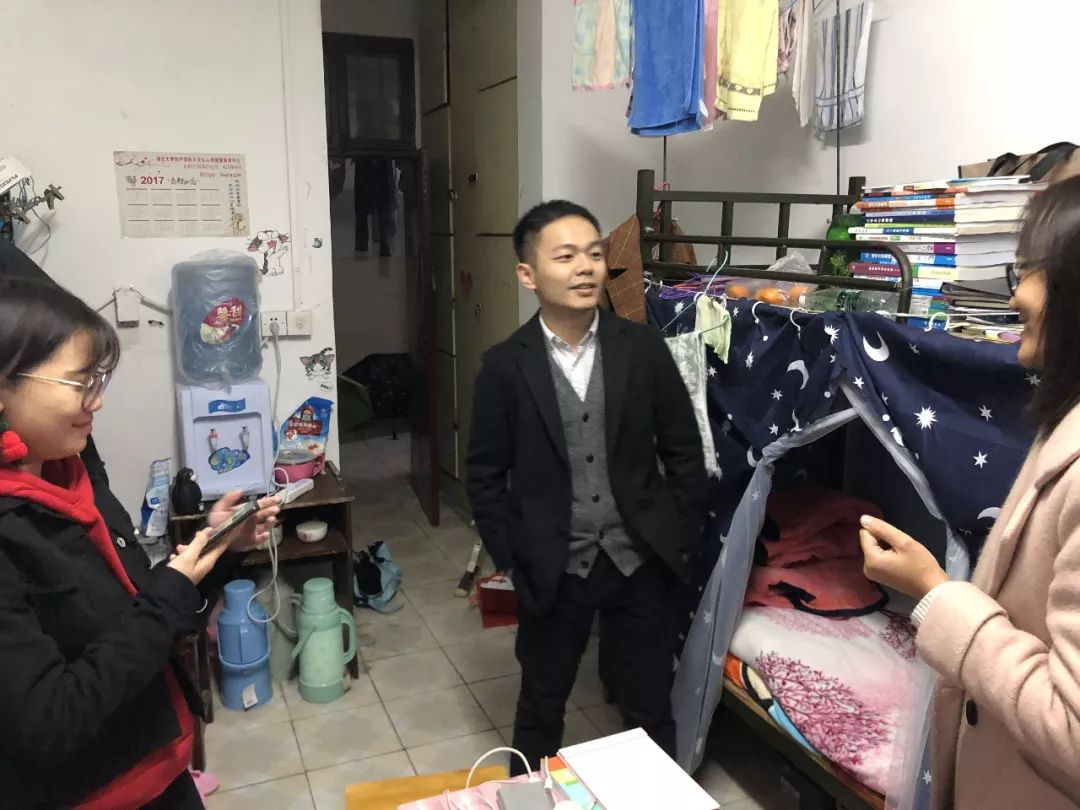 4、本周二徐老师前往商英1801男生寝室检查卫生及大功率电器情况,符合学院相关规定,提出表扬;同时与同学们进行了交流,了解学习生活思想等动态,鼓励他们坚持不懈,搞好早锻炼、精读活动,主意防寒保暖,身体是革命的本钱。(供稿人:徐尚思)