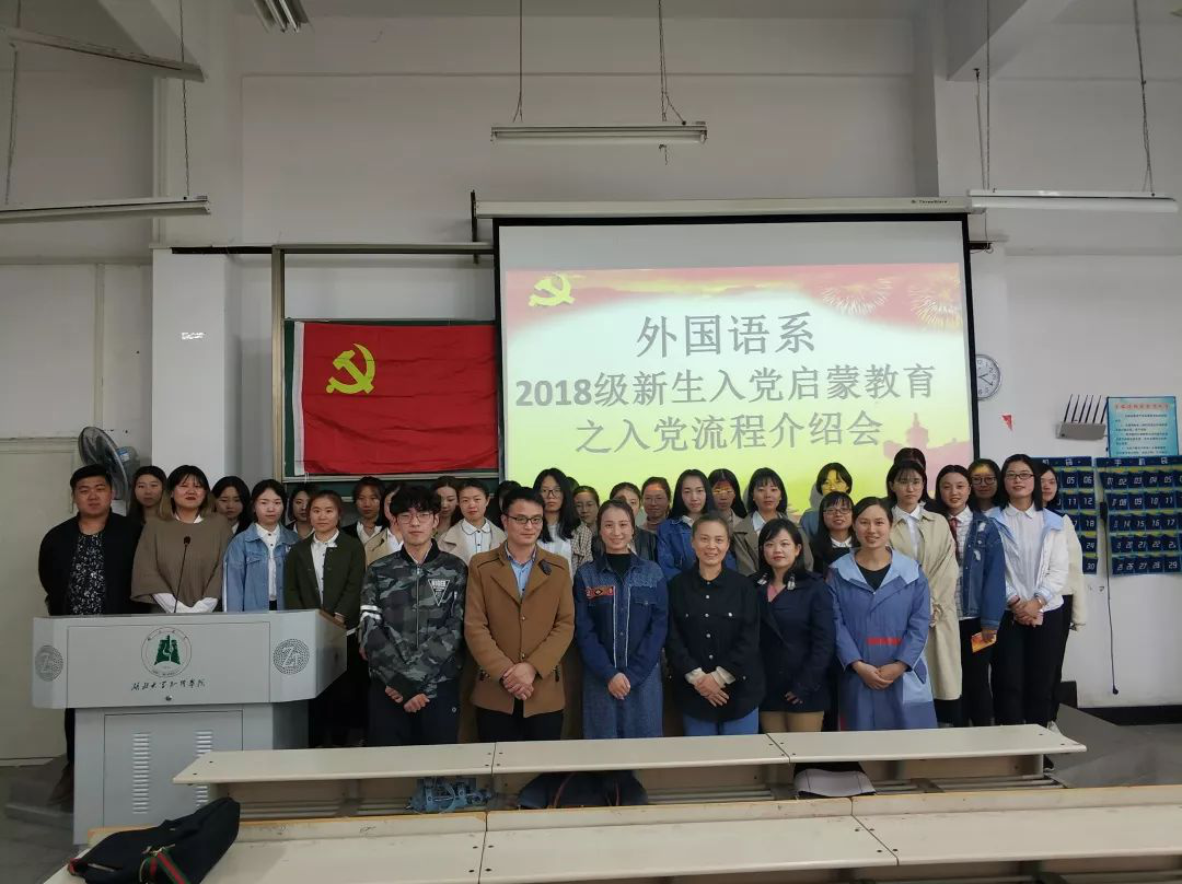 入党启蒙教育是党员教育的基础,是激发学生政治热情,积极向党组织靠拢的关键阶段。为使新生增强对党的认识,端正入党动机,了解组织发展情况,外国语系学生党支部于10月15日在知新楼开展2018级新生入党启蒙教育。此次入党启蒙教育活动加强了学院新生思想政治教育,落实了全面从严治党要求,增加了新生对党基本知识的了解和掌握,全面提升了新生的政治思想素质,激发了广大新生的政治热情。(程星)