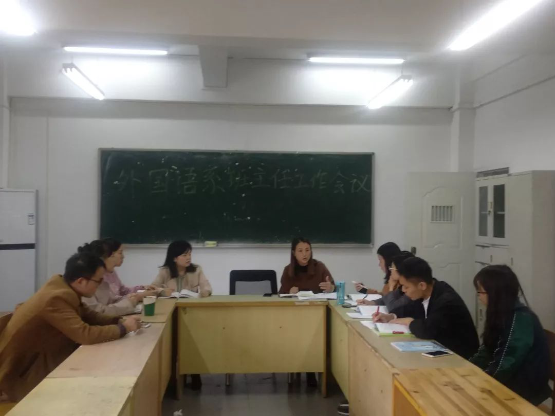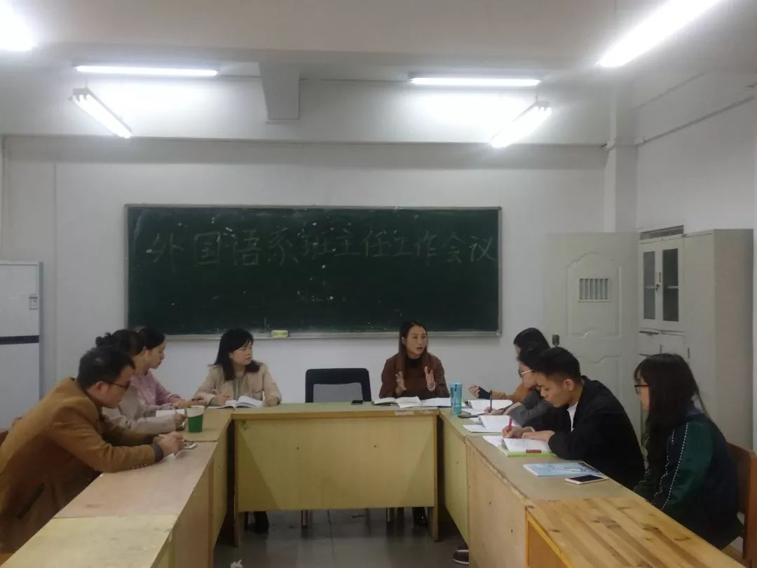 强化班级管理,提高工作效率。外国语系本周三下午在知音楼207召开班主任专项会议,傅丽书记主持,全体辅导员老师、新任班主任们参加本次会议。傅丽书记针对班主任工作提出四点要求,第一,要求班主任严格遵守管理考核制度对班级进行常规管理。第二,根据年轻教师们自身学科背景以及所带课程进行班级分配,要求班主任老师与18级带班辅导员加大联系力度、及时把握学生思想动态,并积极参与到我系“五早一晚”学风建设活动中。第三,强调全体班主任要延续外语系学工队伍抓铁有痕、踏石留印工作作风,每周参与到系部学工动态的宣传工作。第四,针对外语系学生创新创业缺乏专业教师指导、参赛经验欠缺这一薄弱问题,鼓励青年教师带队参赛,促进学生全方面发展。(李婧妮)
