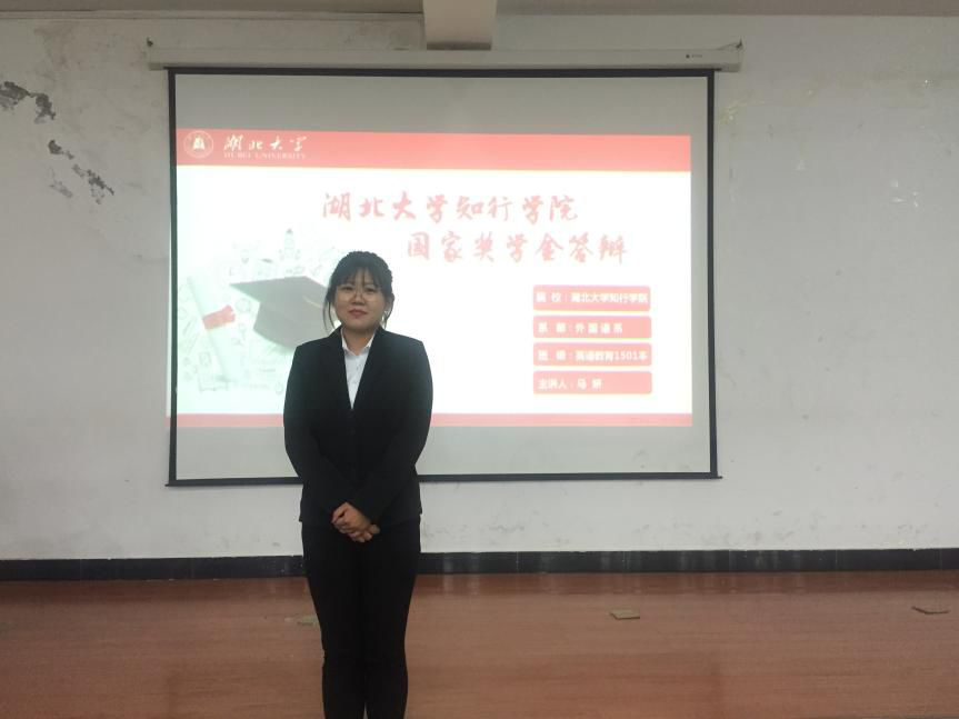 10月8日,我系英语教育1501班马妍同学参加学院国家奖学金评选答辩会与来自各系的16名候选人同台竞技,最终脱颖而出获得2018年yl7703永利集团国家奖学金。