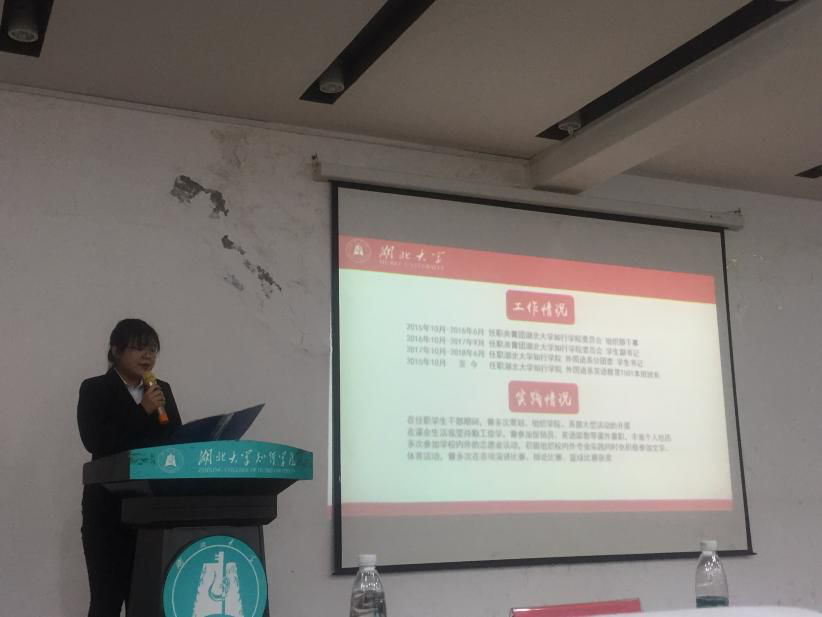 10月8日我院在知远楼302学术报告厅,举行了2018年国家奖学金评选答辩会。 经过个人申报、系部推荐、学院审核等诸多环节产生的来自各个系的16名候选人同台PK竞争国家奖学金名额。在本次答辩会上,我系马妍同学利用制作精美的PPT,通过精彩的五分钟个人陈述,最终脱颖而出获得了2018年国家奖学金。