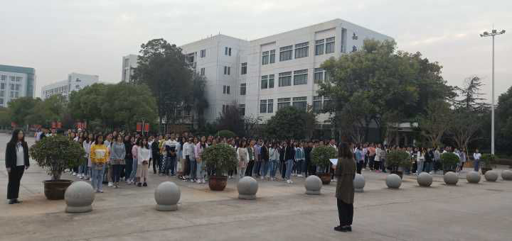 2018年10月8日,yl7703永利集团外国语系大一、大二年级全体学生,于学校正门口举行了新学期第一次升旗仪式。学生会副主席何金霖同学进行了国旗下讲话,围绕“珍惜时光,不负韶华”的主题,告诫同学们“只有善用时间者,才能取得胜利”。本次升国旗仪式