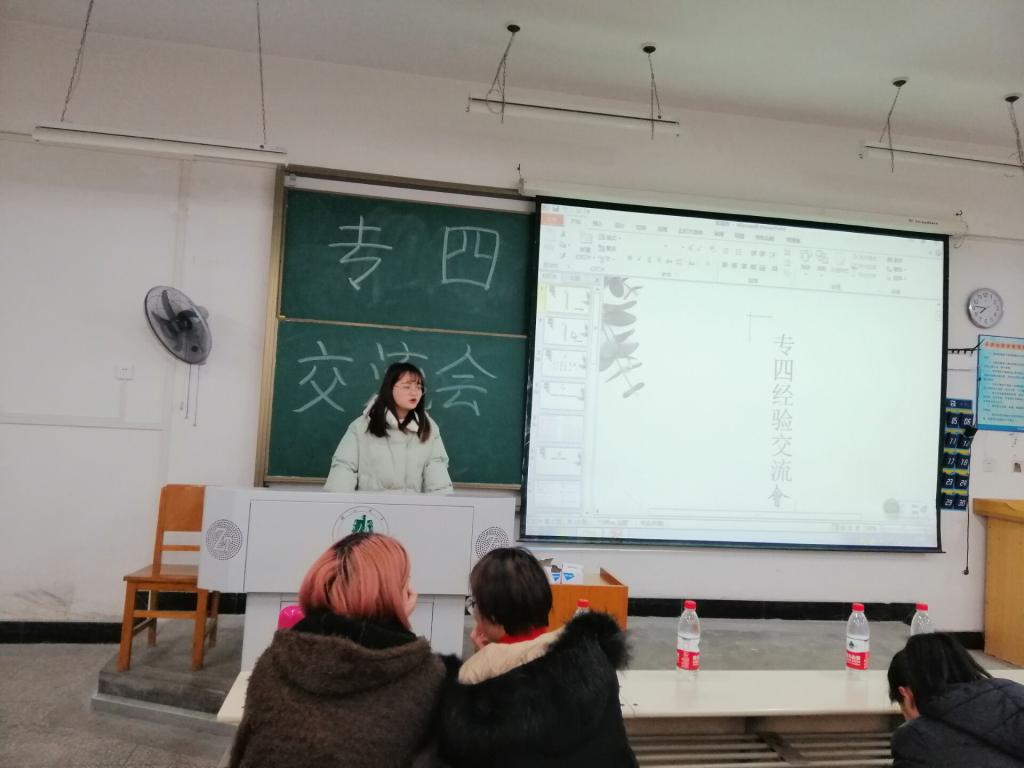 3、四六级考试临近,为加强班级学风建设,提高四六级考试通过率,程星老师为商英1701专班级组织四六级经验交谈会。(供稿人:程星)