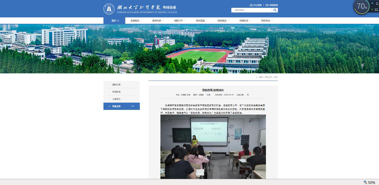 外国语系结合实际情况于5月开展以“资助政策,助我成长”为主题的学生资助政策宣传教育月活动。此次活动广开渠道、紧抓时机,创新宣传形式和载体,通过主题班会、制作张贴宣传海报、网络宣传、励志征文等形式重点开展一系列资助宣传活动,让资助工作更接地气、更有实效。(李婧妮)